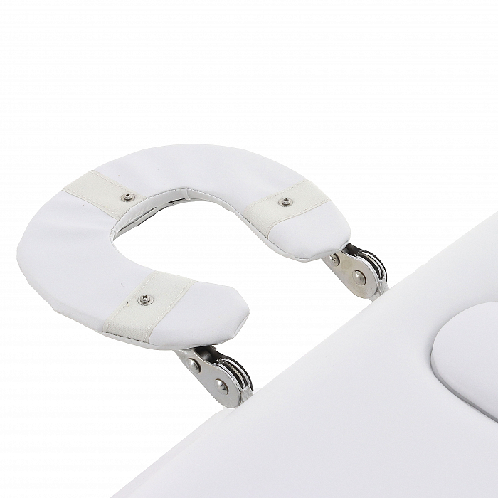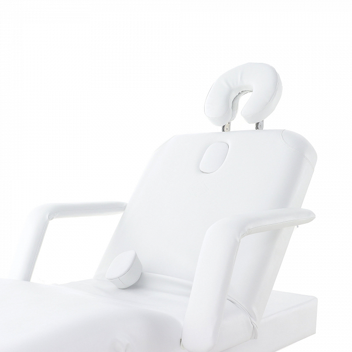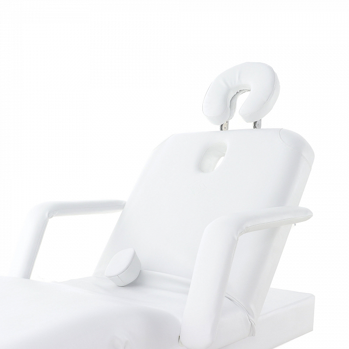 - Каркас стола выполнен из стального сплава. Этот материал не подвержен коррозии, не портится от попадания влаги, не деформируется. В качестве наполнителя используется поролон толщиной 120 мм. Он не проминается, хорошо сохраняет свою форму и оказывает должную поддержку. Обивкой служит винил-люкс. Этот материал отличается высоким качеством. Он не протирается и не трескается, не портится от попадания влаги и косметических средств. Кроме того, он приятен на ощупь, не вызывает тактильного дискомфорта или аллергии. В комплекте есть не только подголовник, но также и валик под ноги.