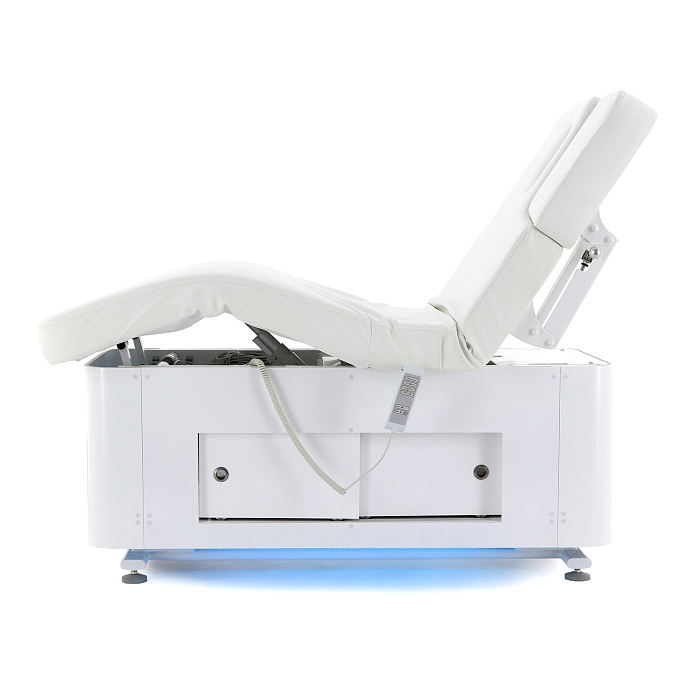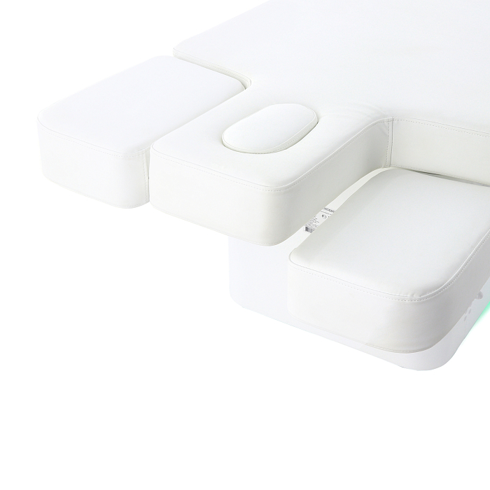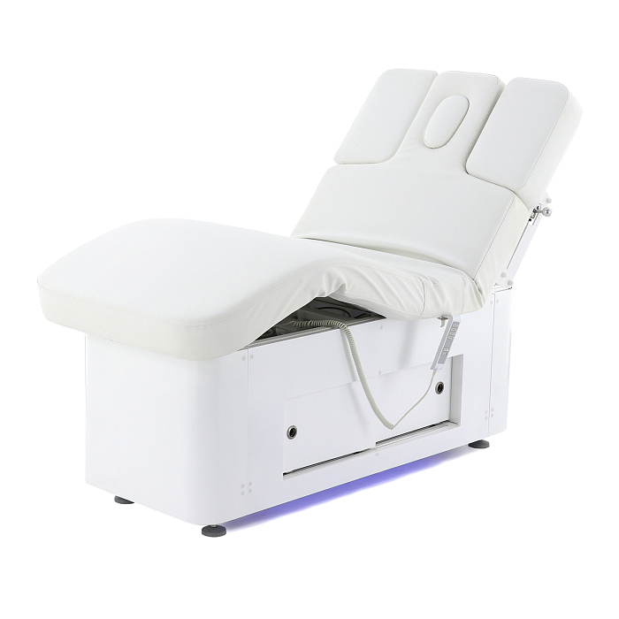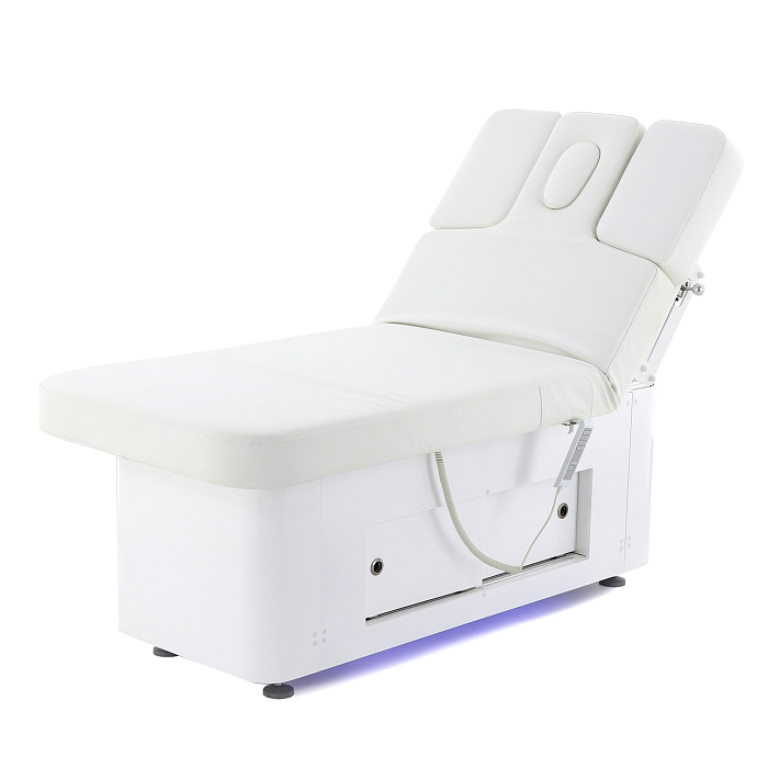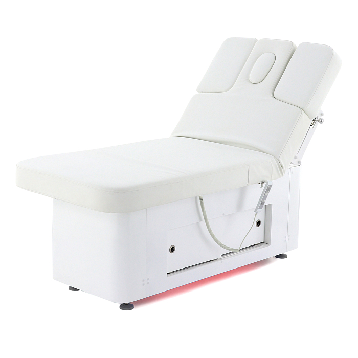 Модель имеет несколько секции и 4 мотора для удобной настройки подвижных частей ложемента. Благодаря широким возможностям регулировки стол позволяет выполнять все виды процедур на высоком уровне качества. За счёт надёжной стальной рамы изделие выдерживает нагрузку до 150 кг и готово к активной ежедневной эксплуатации.