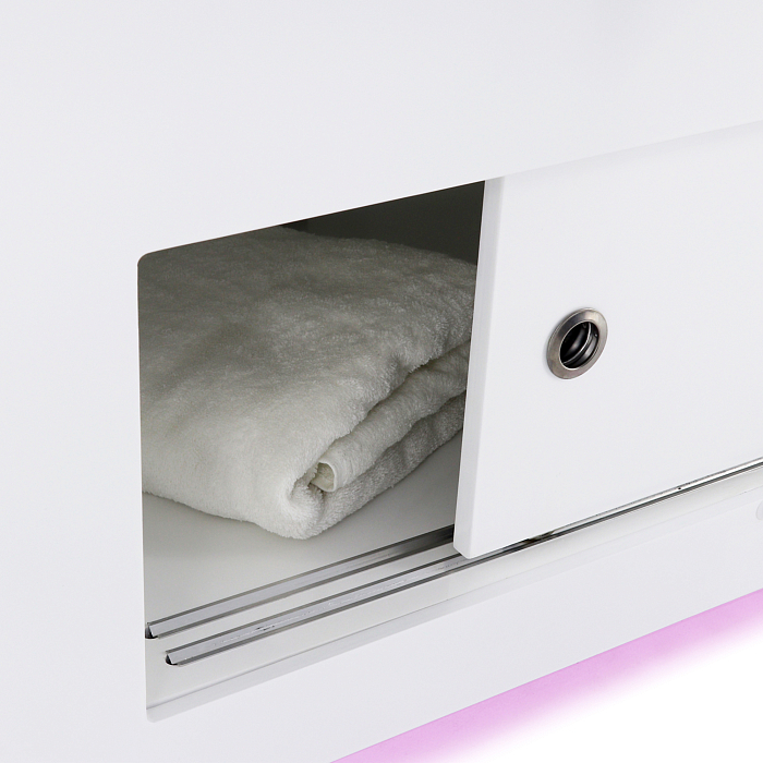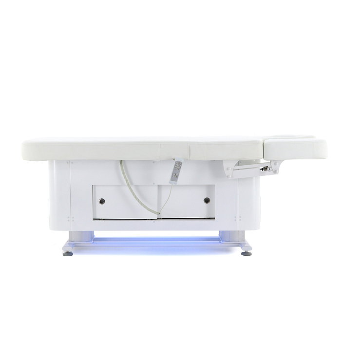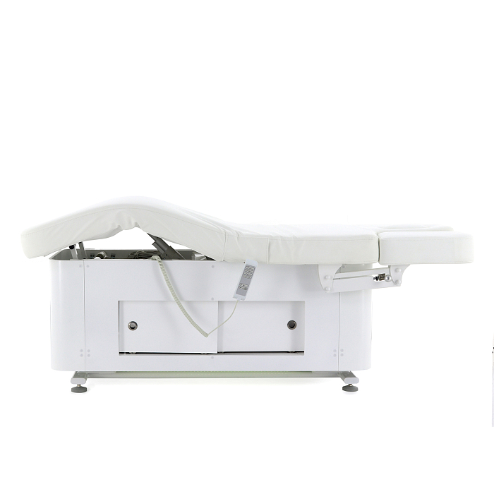 Новый массажный стол премиум-класса для высокотехнологичного оснащения косметологий, спа-центров, салонов красоты. Оборудование такого уровня выгодно подчеркнёт статус и профессионализм заведения. Основание и подъёмная рама модели встроены в тумбу с ящиком для хранения принадлежностей. Это эргономичное решение придаст интерьеру современный облик и позволит рационально использовать пространство кабинета. Для удобства открывания каждая дверца ящика снабжена отверстием с кольцом-вставкой из нержавеющей стали.