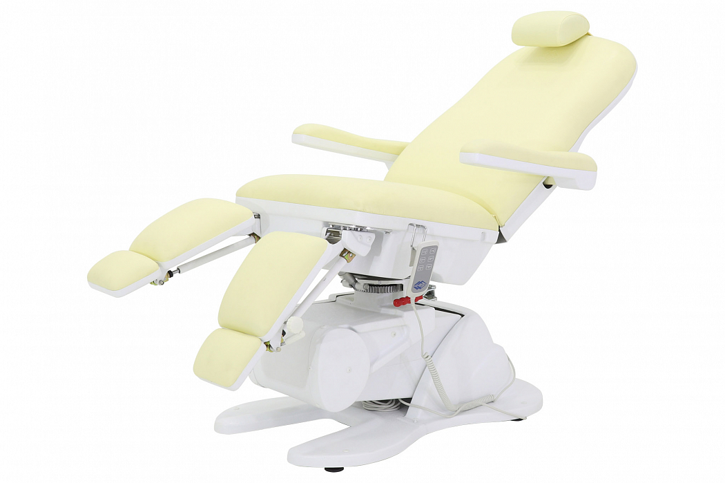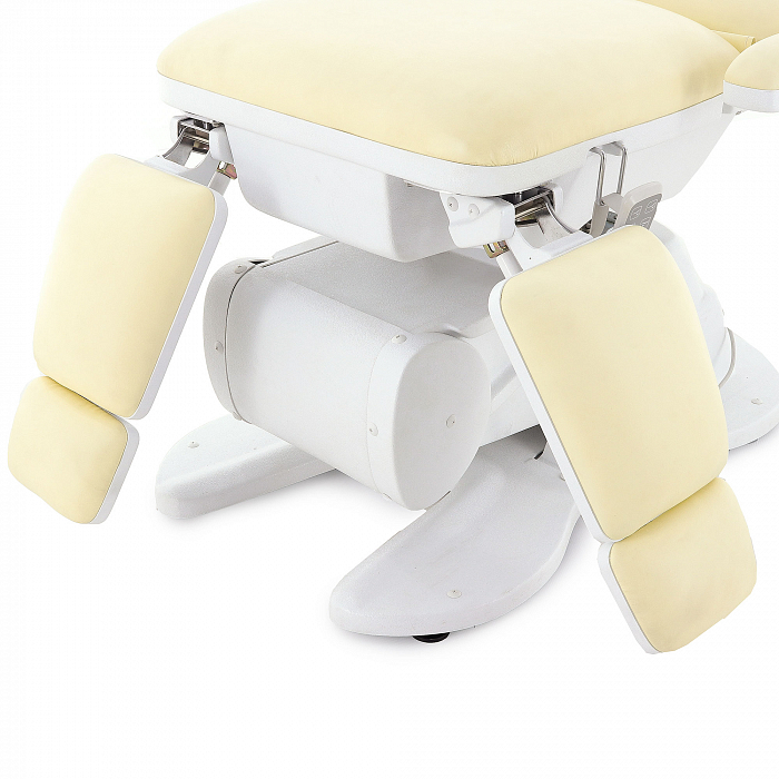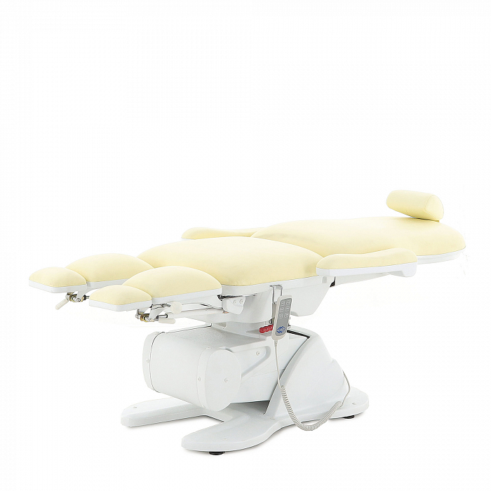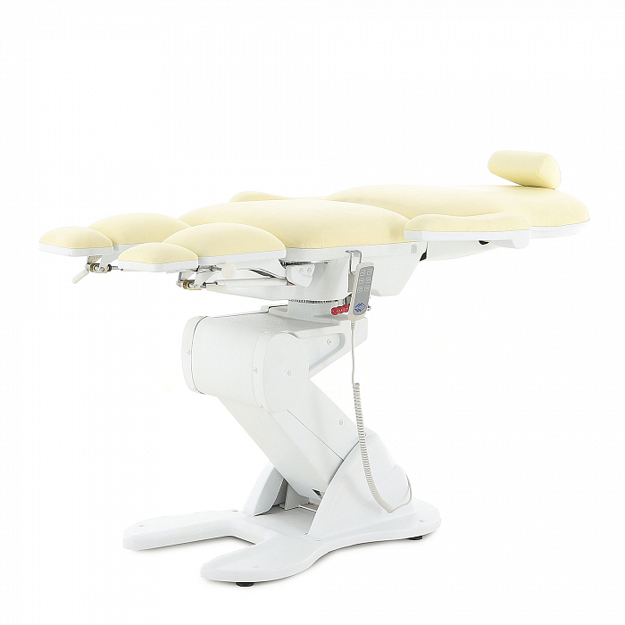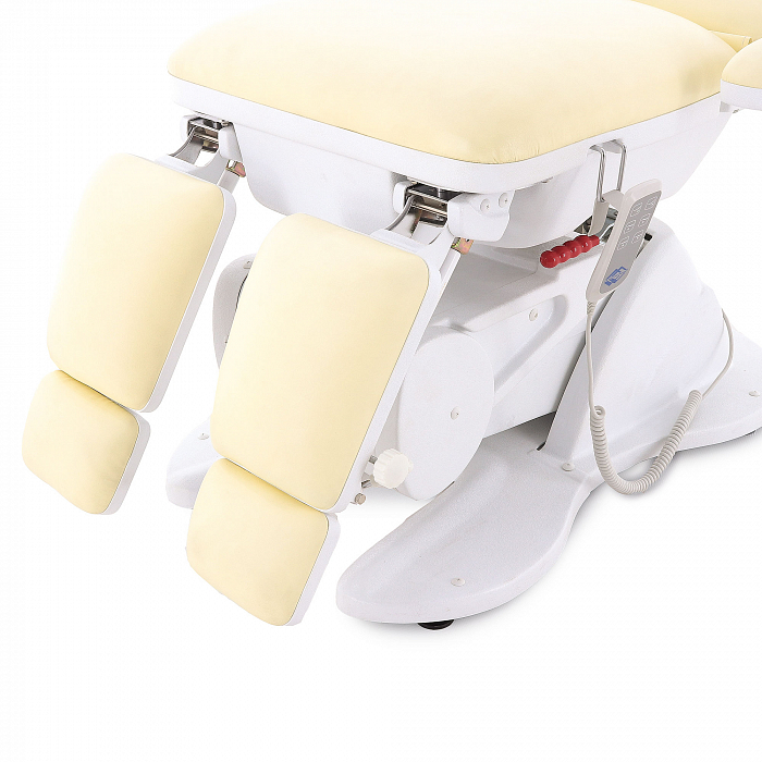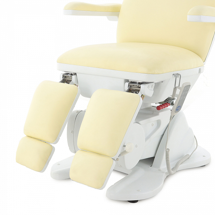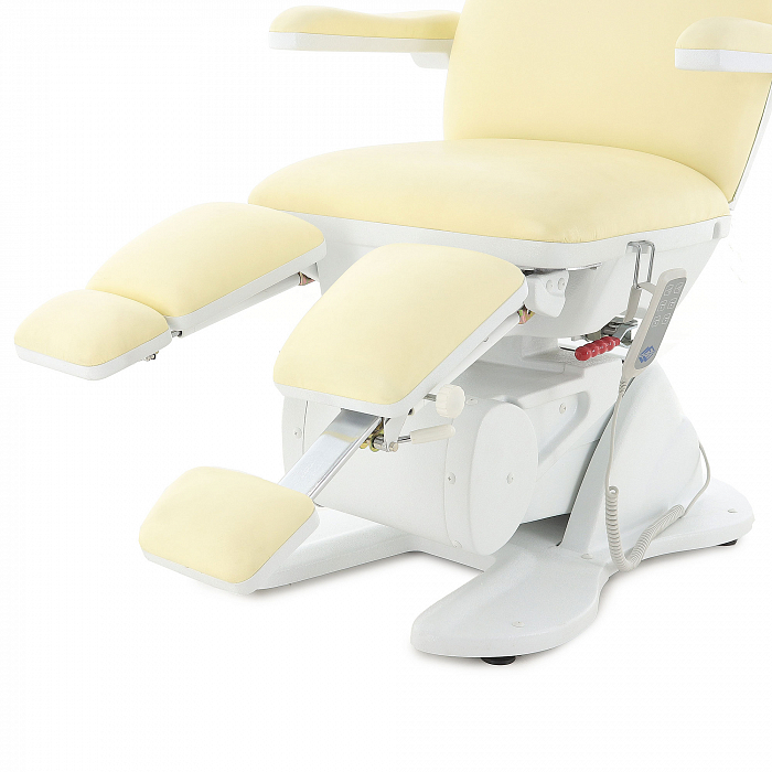 - Кресло имеет семь секций, которые можно регулировать по углу наклона и положению. Это позволит подобрать наиболее комфортную позу для конкретной процедуры. Регулировка высоты – при помощи электрического подъемника. Всего кресло имеет три мотора. Максимально возможная нагрузка на конструкцию составляет 180 килограмм.
