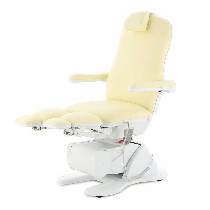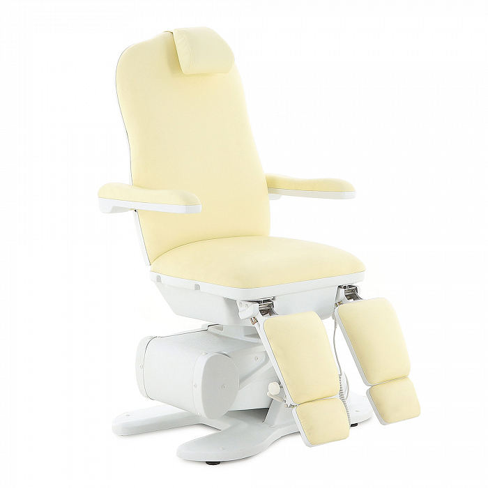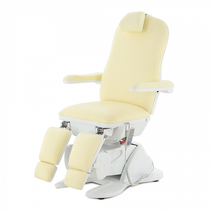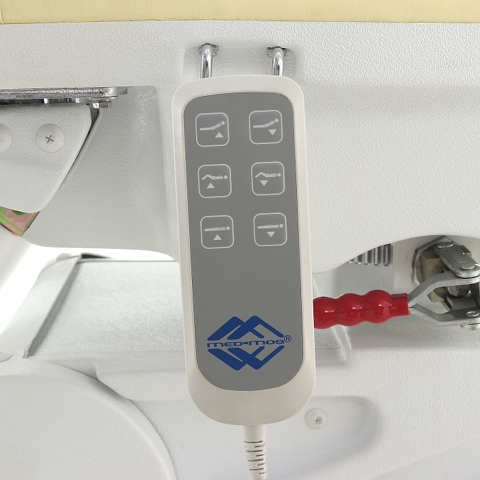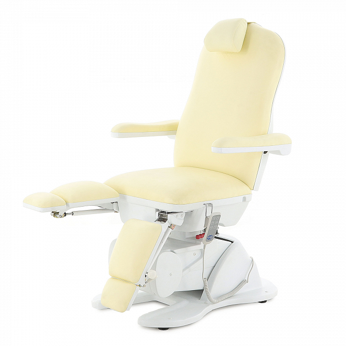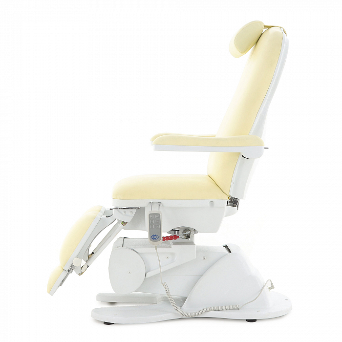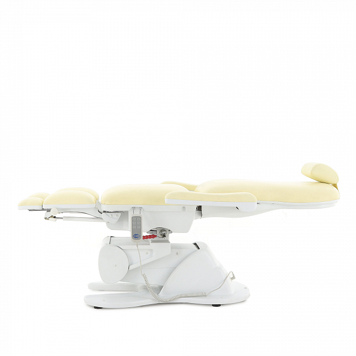 - Кресло имеет семь секций, которые можно регулировать по углу наклона и положению. Это позволит подобрать наиболее комфортную позу для конкретной процедуры. Регулировка высоты – при помощи электрического подъемника. Всего кресло имеет три мотора. Максимально возможная нагрузка на конструкцию составляет 180 килограмм.