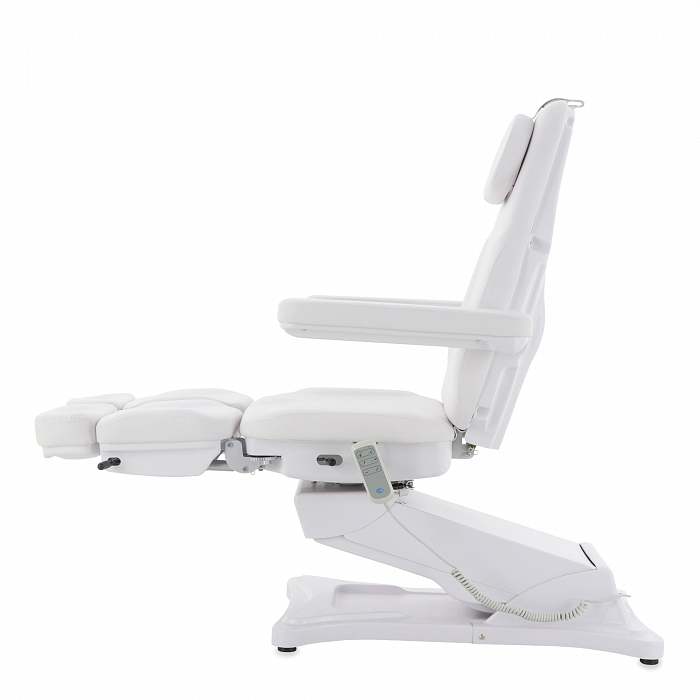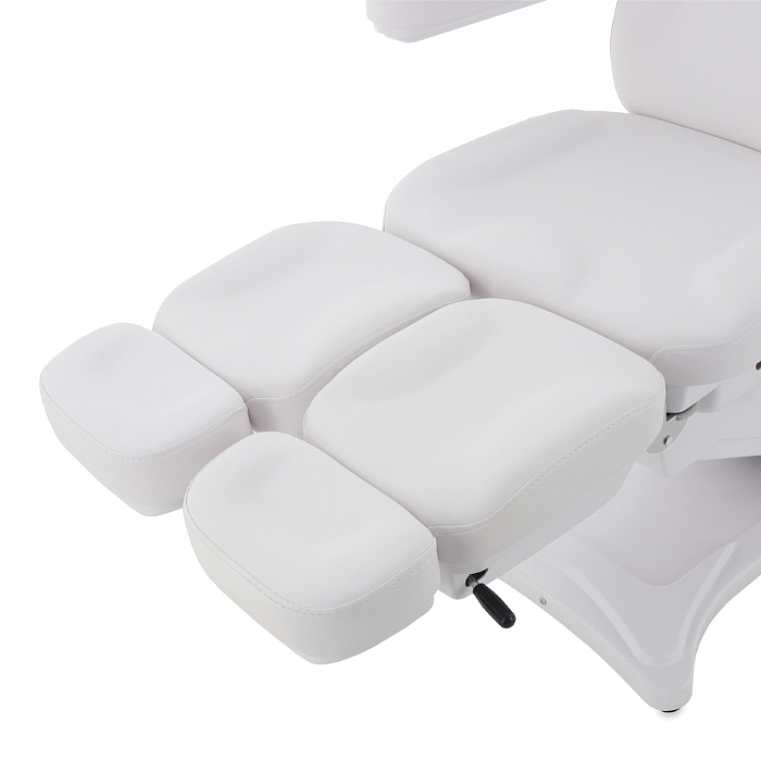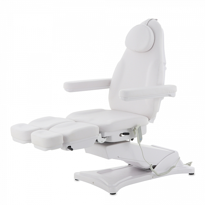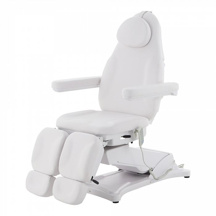 За счет наличия на кресле нескольких секций с возможностью регулировки по углу наклона, удается без проблем подобрать удобное положение для конкретной процедуры. Подножки регулируются обособлено друг от друга. Для клиента предусмотрены подлокотники.
