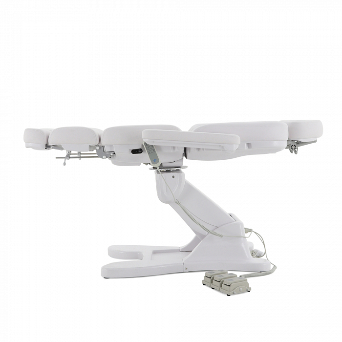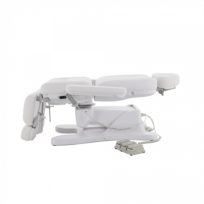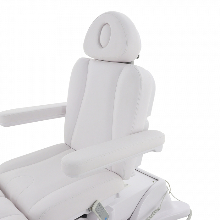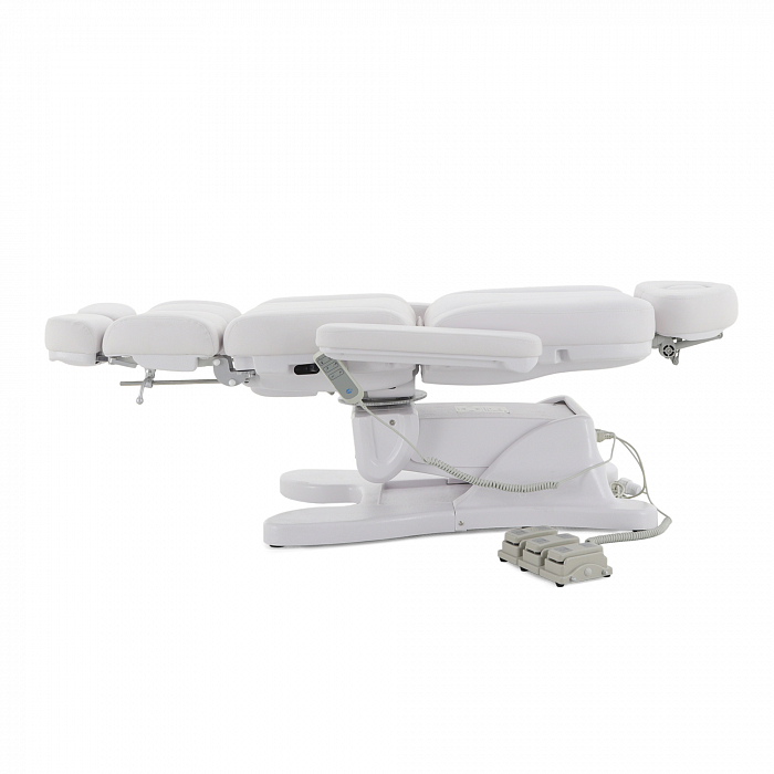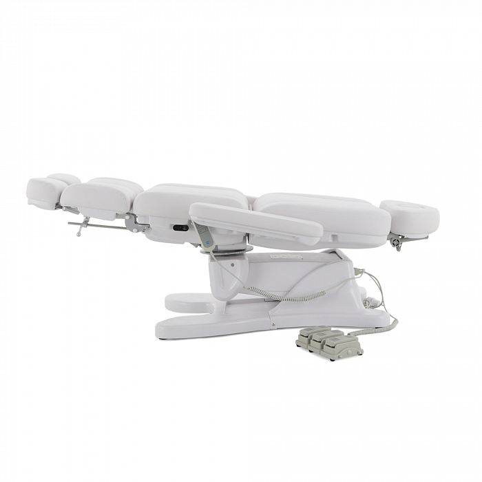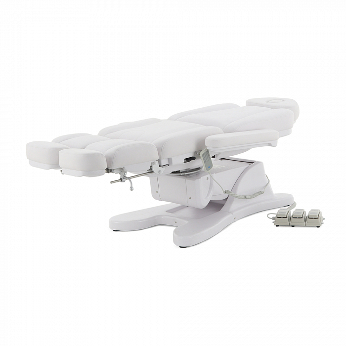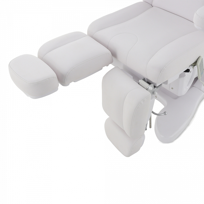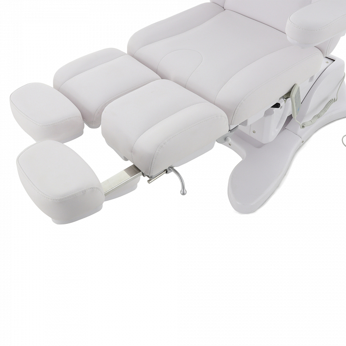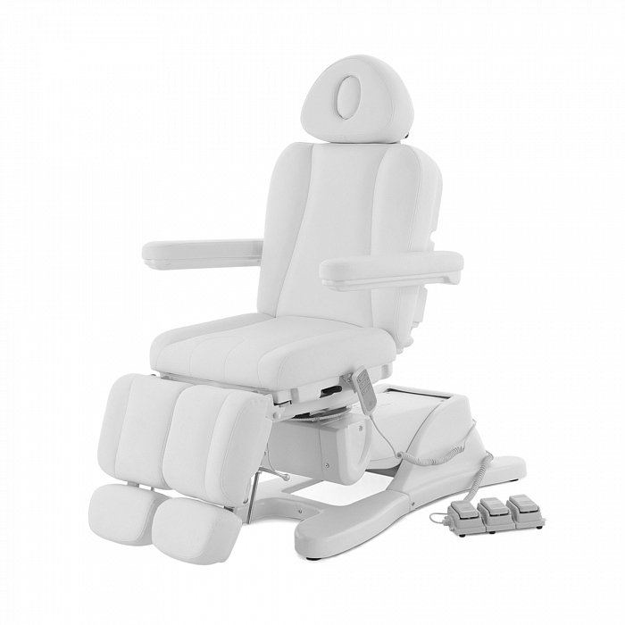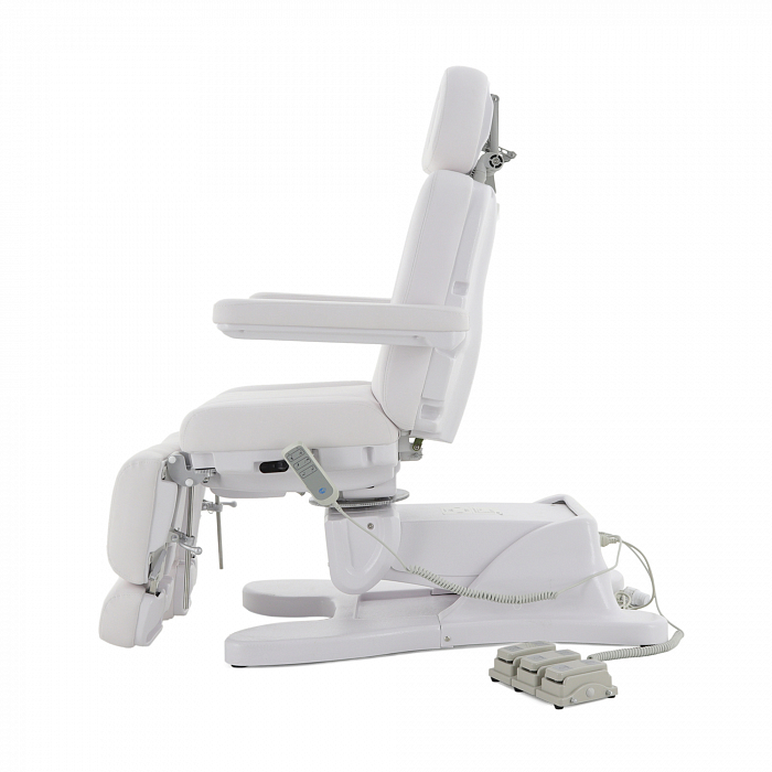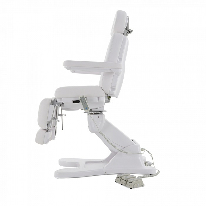 За счет наличия на кресле нескольких секций с возможностью регулировки по углу наклона, удается без проблем подобрать удобное положение для конкретной процедуры. Подножки регулируются обособлено друг от друга. Для клиента предусмотрены подлокотники.