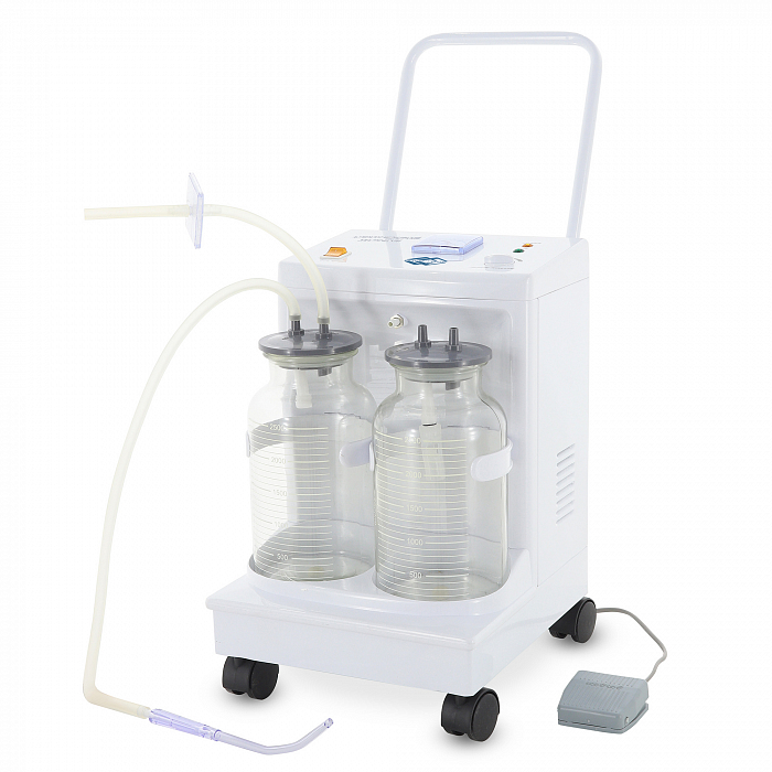 Электрический аспиратор Н002 от Med-Mos предназначен для сбора биологических жидкостей и частиц тканей из полостей при проведении операций и в реабилитационный период. Отсасыватель оснащен двумя резервуарами из прочного стекла для сбора жидкости, объём каждого из них составляет 2,5 л. Корпус аспиратора выполнен из металла и имеет защитное покрытие, благодаря чему значительно увеличивается срок эксплуатации прибора