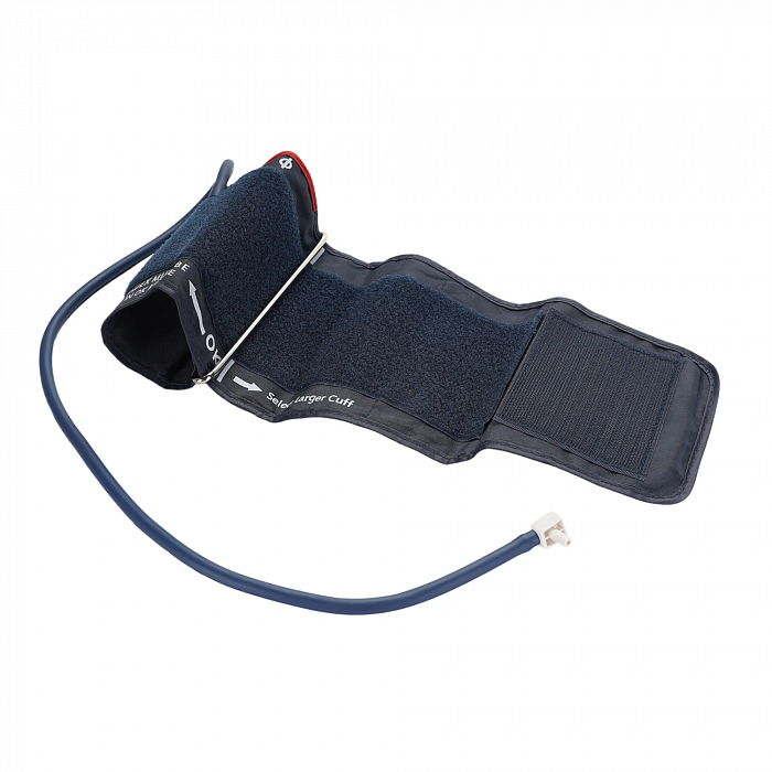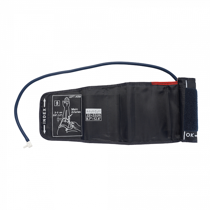 - Манжета на предплечье изготовлена из плотного материала, приятного на ощупь, и снабжена широкой липучкой для удобства фиксации. Обхват регулируется от 22 до 32 см, что соответствует размеру предплечья взрослого человека средней комплекции. В качестве источника питания используются 4 батарейки. В боковой части корпуса предусмотрен выход для кабеля питания. При необходимости можно приобрести сетевой шнур и подключать тонометр к розетке.