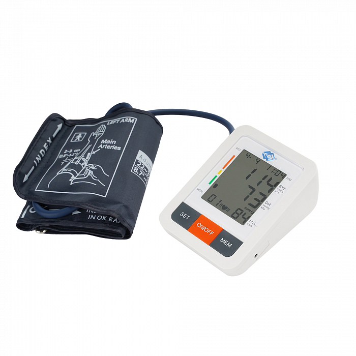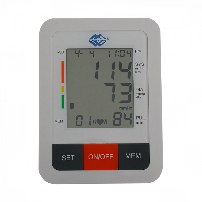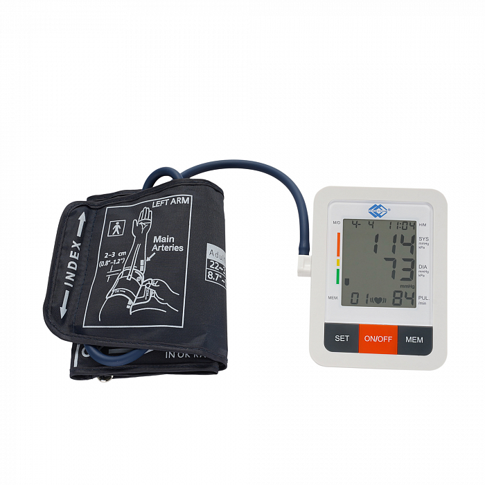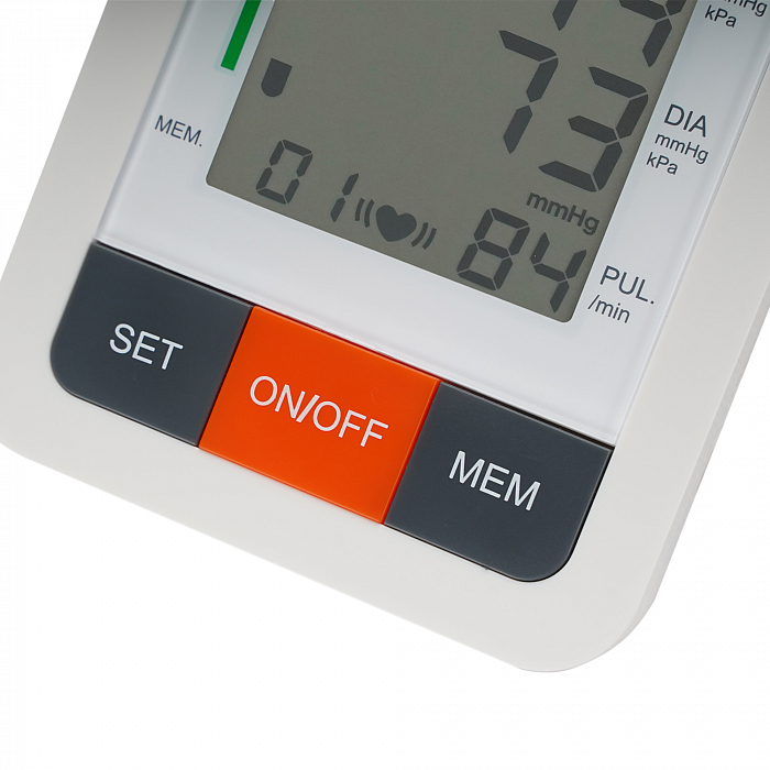 - Автоматический плечевой тонометр с удобной системой настроек – незаменимый прибор для дома и медицинских учреждений. Большой и чёткий ЖК-экран расположен под небольшим углом для комфортной работы с оборудованием. Слева от экрана находится трёхцветная шкала ВОЗ, которая поможет правильно оценить результаты измерений. В устройстве также предусмотрена система голосового сопровождения. Это позволит врачу не отвлекаться на чтение результатов, а больному при самодиагностике – не напрягать лишний раз зрение.