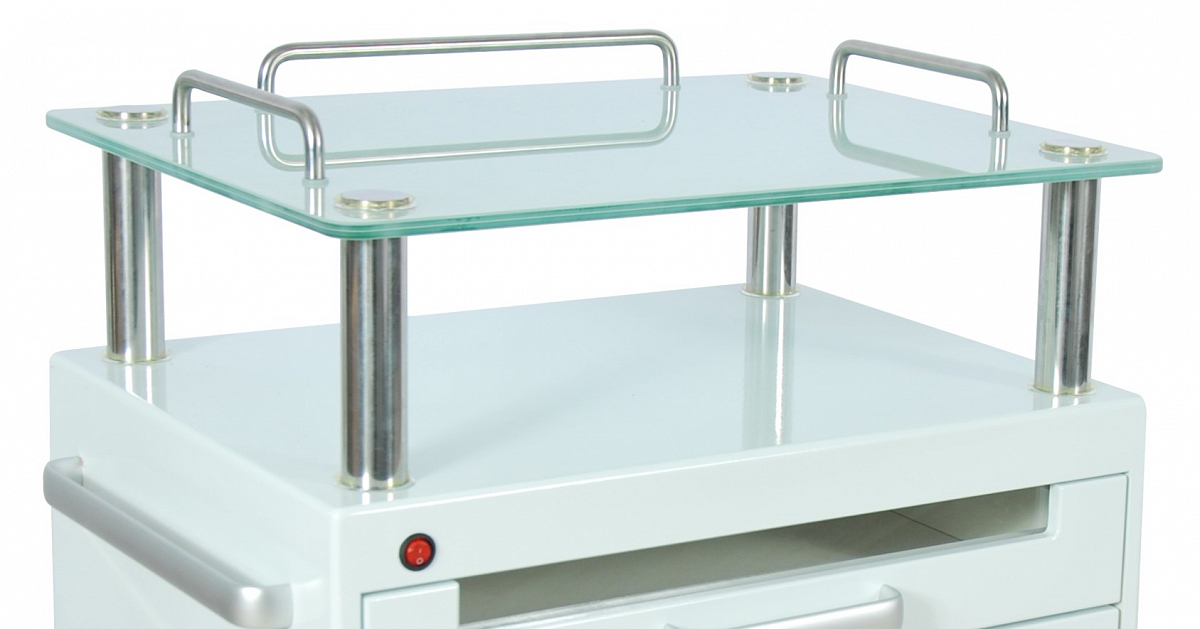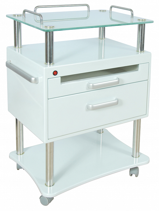 Выдвижная полка оснащена УФ-стерилизатором для обеззараживания инструментов. Она позволит поддерживать стерильную чистоту, не отходя от рабочего места.