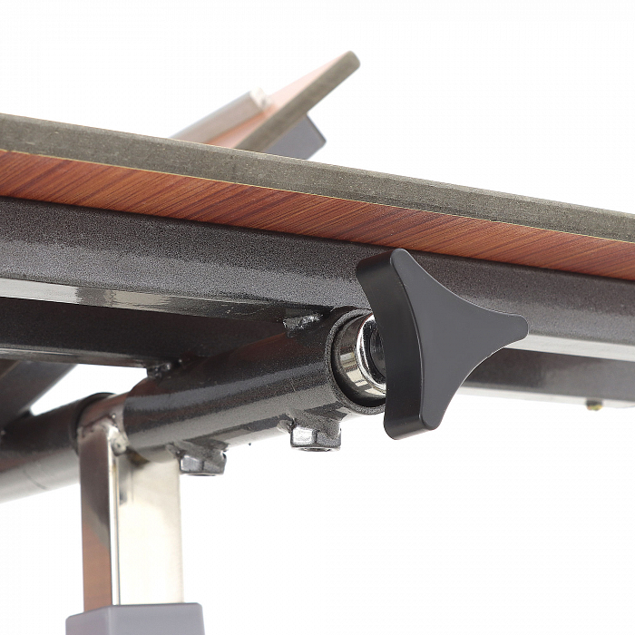 - При производстве каркаса конструкции использовалась сталь. Столешница приспособления сделана из HPL пластика. Функциональное преимущество оборудования — возможность вращения и наклона столика.