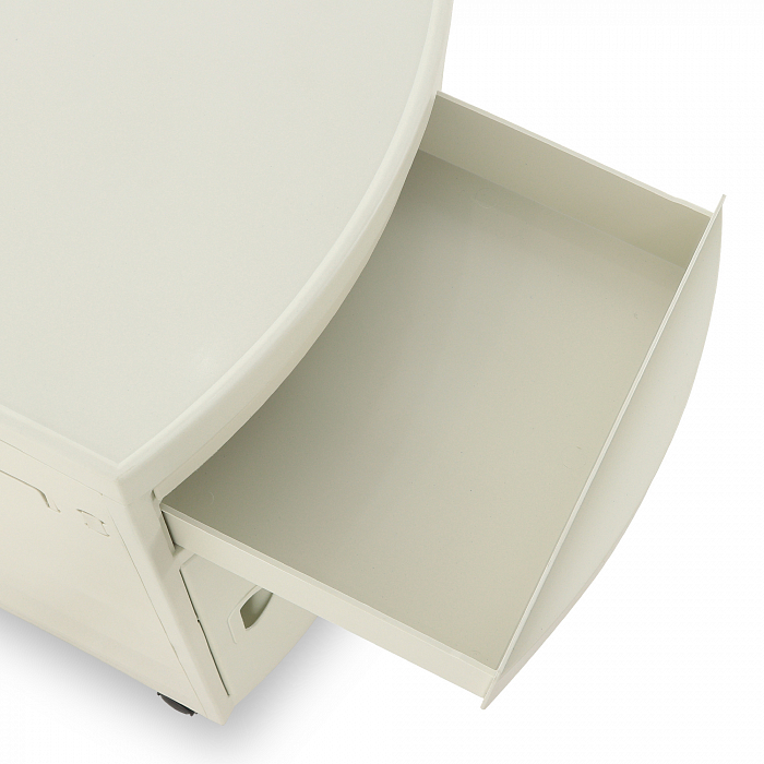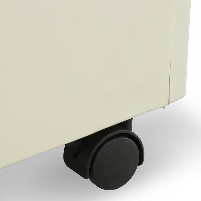 - Модели отличаются по дизайну, количеству отсеков, весу, наличию или отсутствию дополнительных элементов: столешницы, выдвижных полок и ящиков. Мебель выпускается из металла или пластика. По степени мобильности различают тумбы передвижные и стационарные.