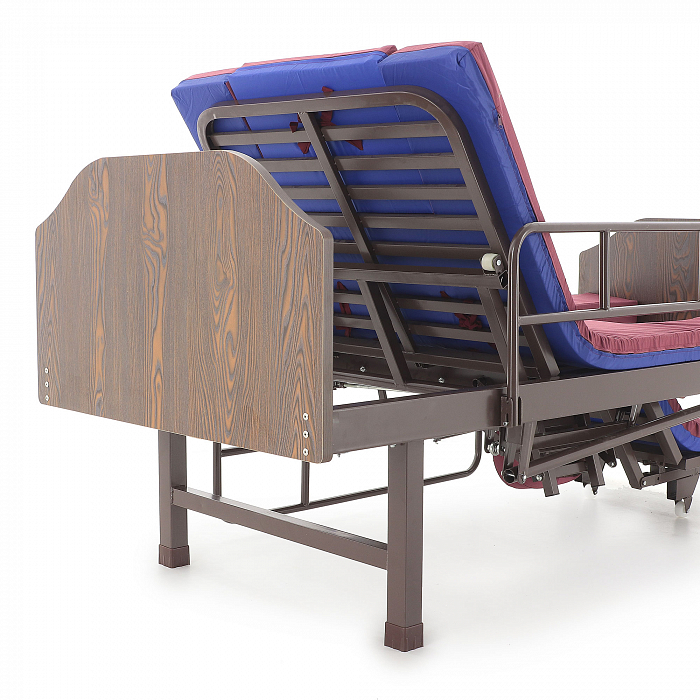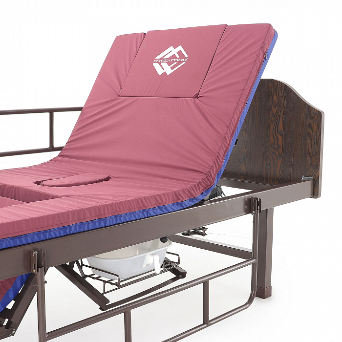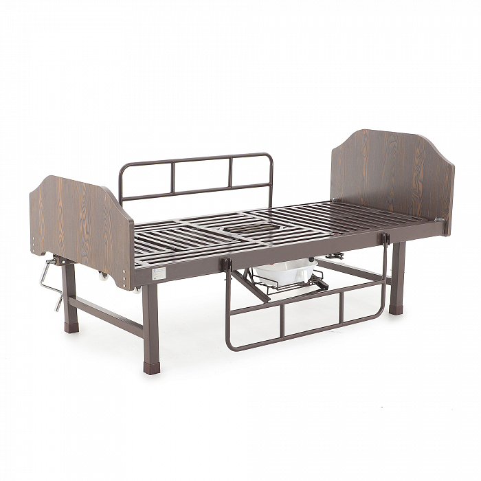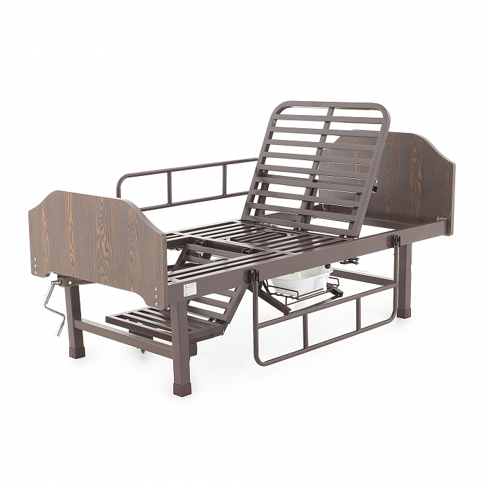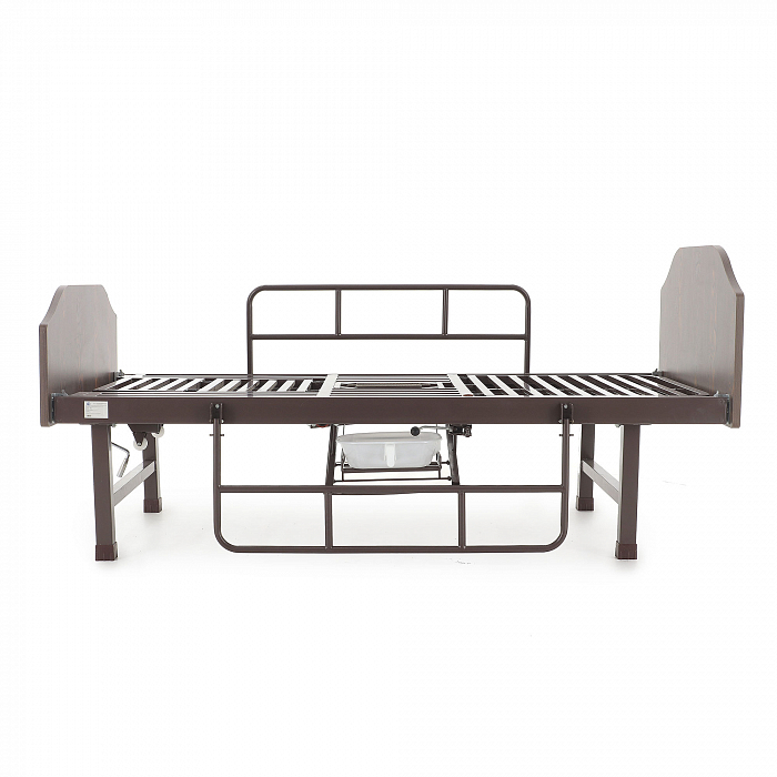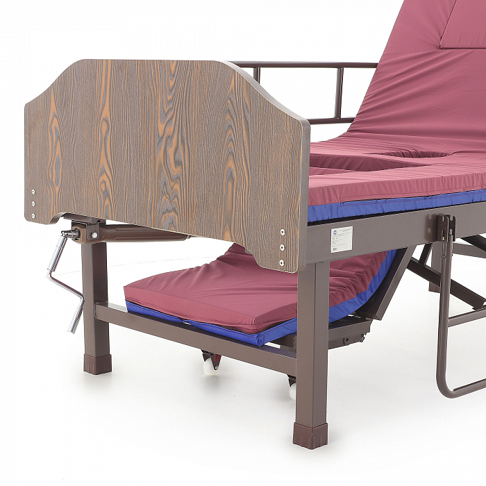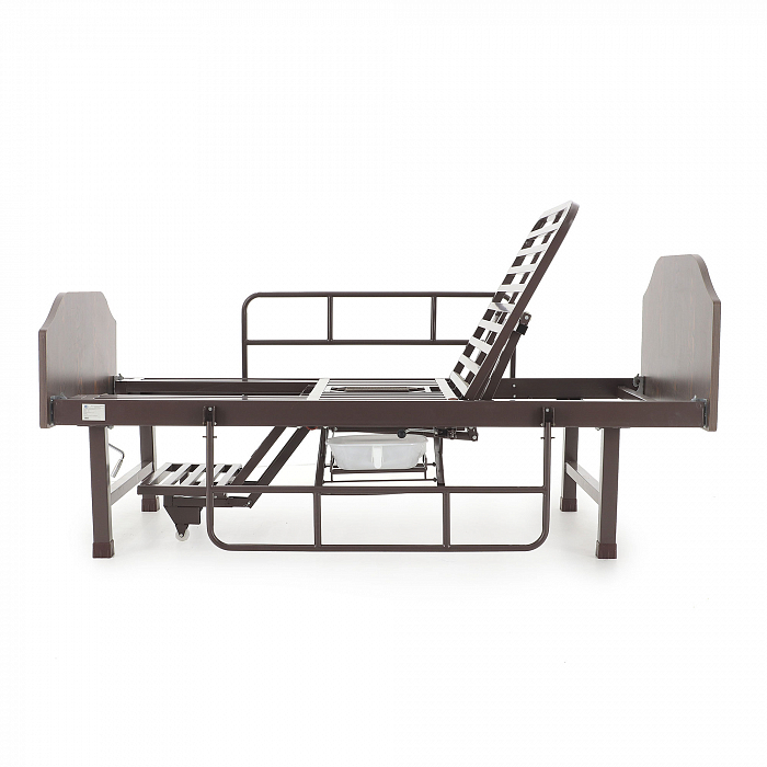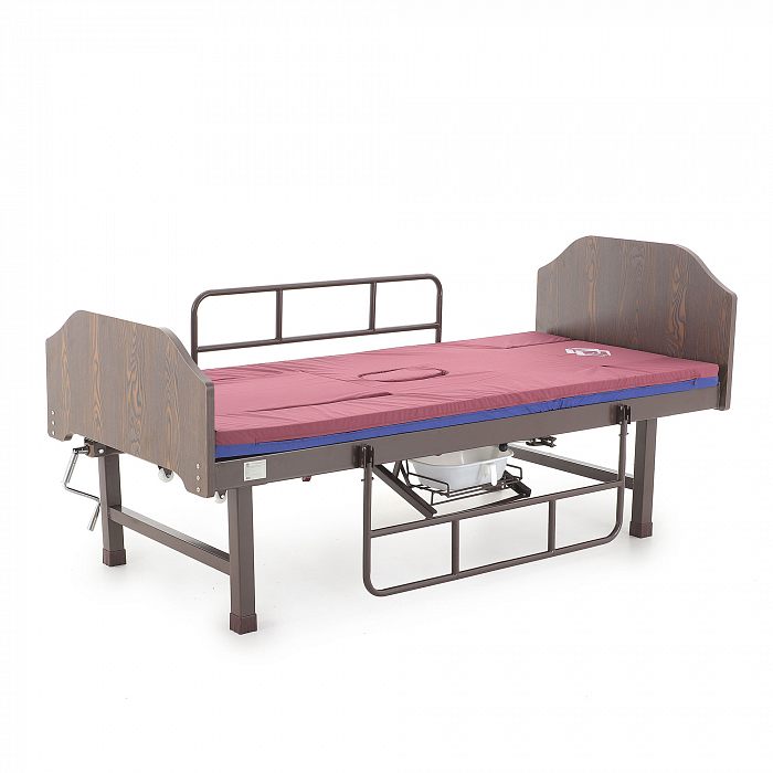 Конструкция кровати механической Е-49 с туалетным устройством и функцией «кардиокресло» сделана так, чтобы обеспечить максимальное удобство пациенту и людям, которые за ним ухаживают. Так, главными преимуществами кровати являются наличие опции «кардиокресла» и туалетного устройства. Есть возможность регулировки ножной, спинной, коленной секций, также встроена возможность подъема головы и ног. Эта модель отлично подойдет для использования в домашних условиях.