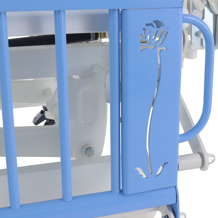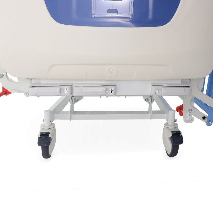 Каркас кровати изготовлен из высокопрочной стали и выдерживает нагрузку до 250 кг! Это гарантирует, что оборудование прослужит долго без потери своих эксплуатационных качеств. Обтекаемый эргономичный корпус без выступающих элементов исключает случайные травмы при пользовании кровати. Откидные боковые ограждения с газлифтом и механизмами автофиксации/расфиксации защищают маленьких пациентов от падений. Кровать оснащена колёсами с индивидуальными тормозами для удобного и безопасного перемещения.