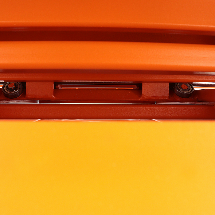 - Фундаментная рама, рамы платформы и механизма поперечного смещения изготовлены из профильных стальных труб и стального листа, с полимерно-порошковым покрытием