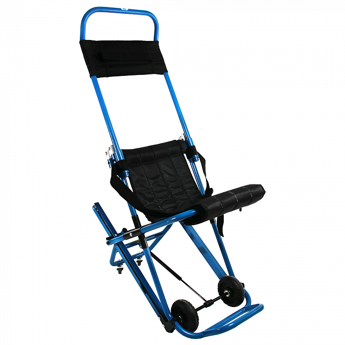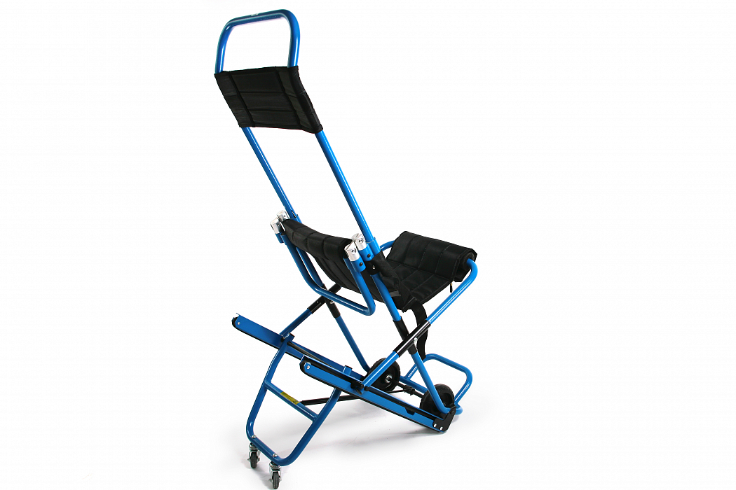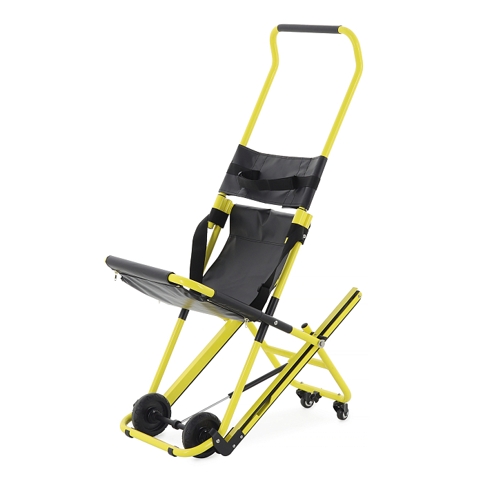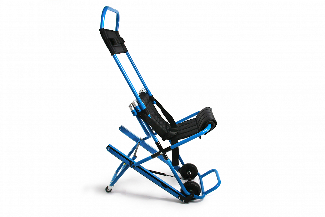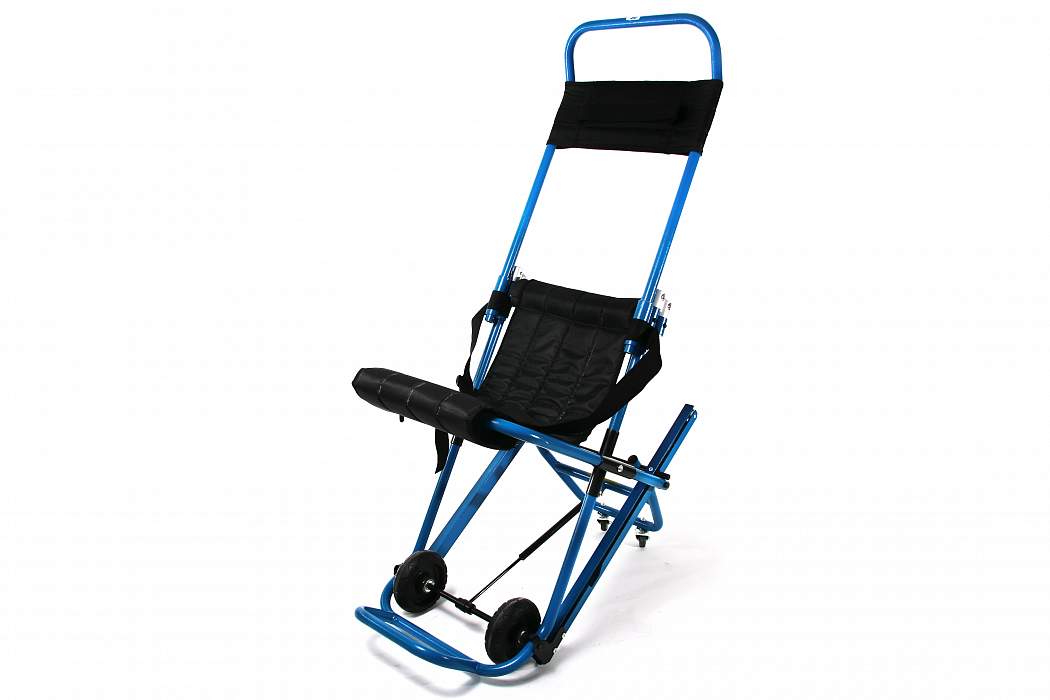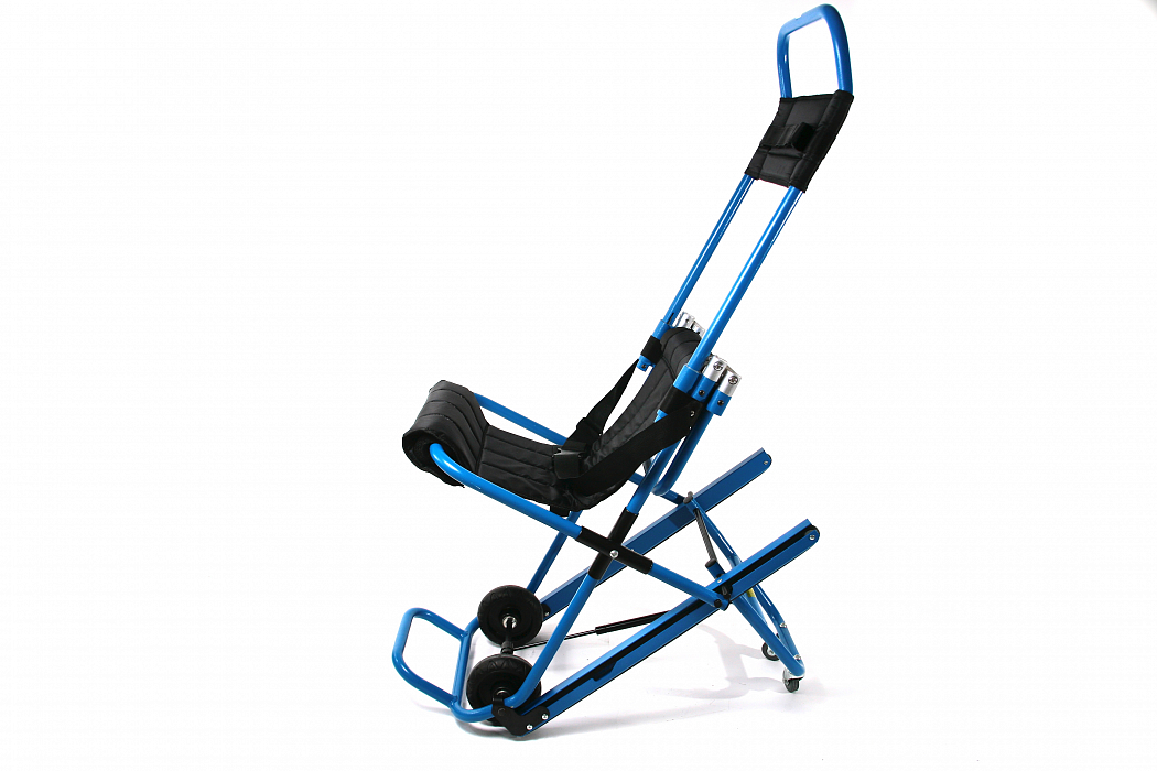 Складные носилки кресельного типа с колёсами и полозьями специально разработаны для эвакуации из зданий маломобильных людей при чрезвычайных ситуациях. Колёса и полозья обеспечивают мягкое и безопасное скольжение по ступеням. Для предотвращения падения предусмотрены специальные фиксирующие ремни. Перемещение человека с помощью данной модели не требует особых трудозатрат и может производиться силами одного сотрудника.