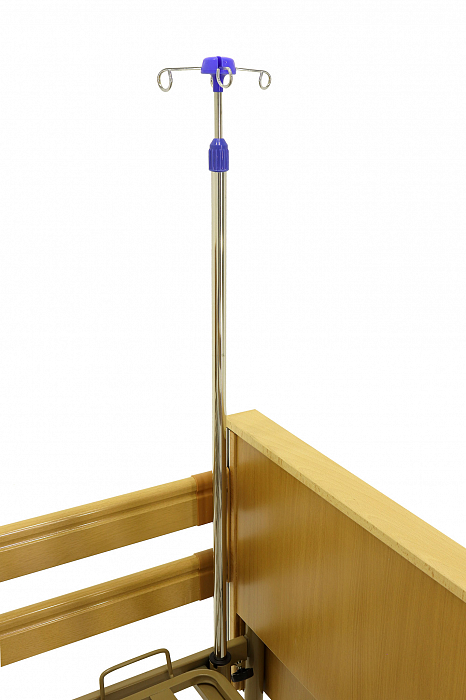 В комплектацию кровати входит также дуга для подтягивания и инфузионная стойка. Это позволяет создавать максимально функциональное пространство для пациента. Кровать установлена на колесики, которые позволяют перемещать ее при необходимости. Также она имеет удобные поручни, которые необходимы для комфорта пациента.