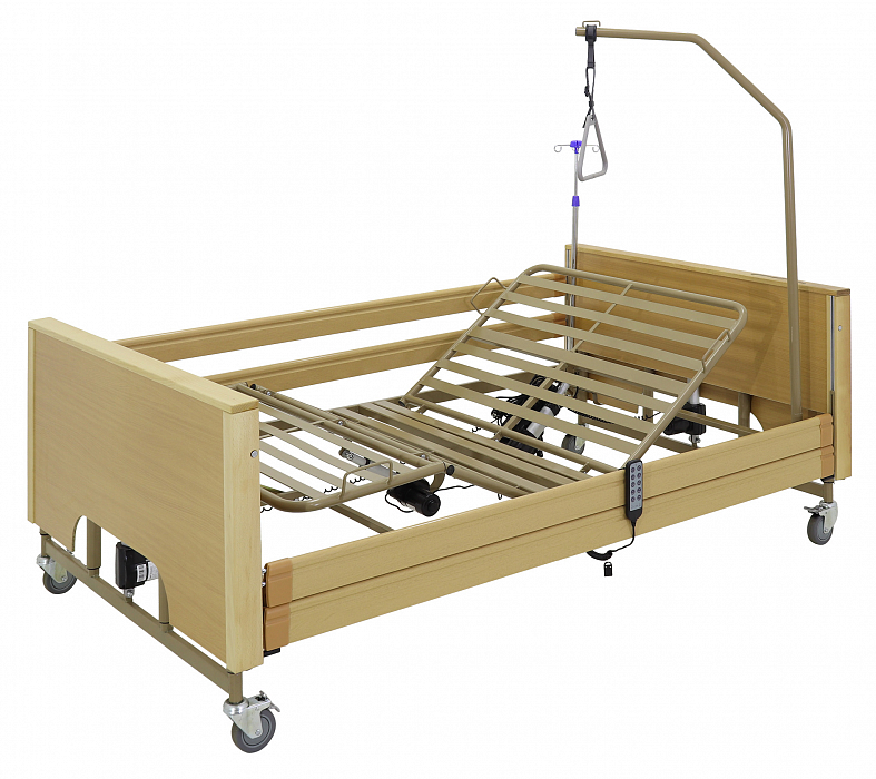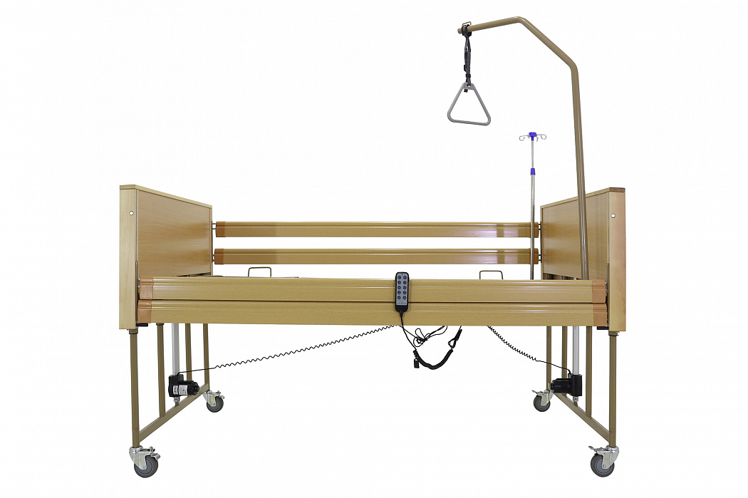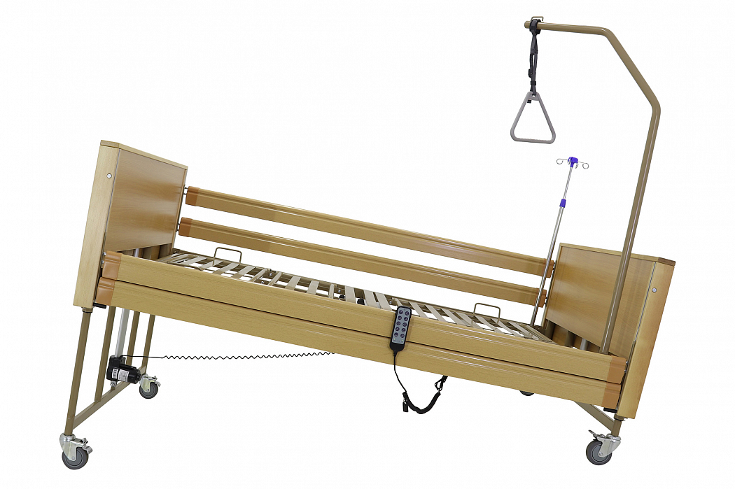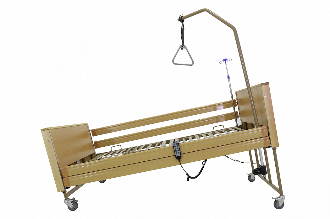 Кровать имеет электрический привод, благодаря которому можно изменять положение ее секций в зависимости от потребностей больного. Модель имеет четыре секции и пять функций. Положение секций можно легко регулировать, фиксируя в нужном положении. Максимально возможная нагрузка на кровать составляет 200 килограмм, ее собственный вес – 128.5 кг.