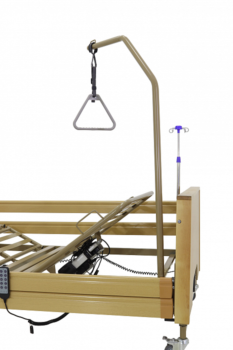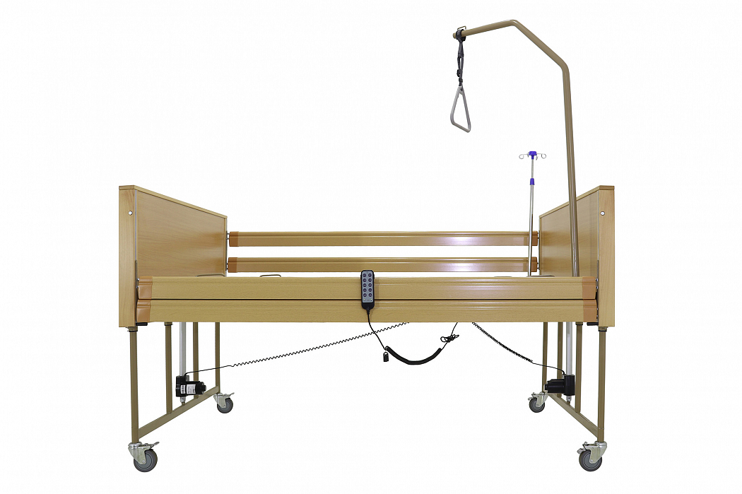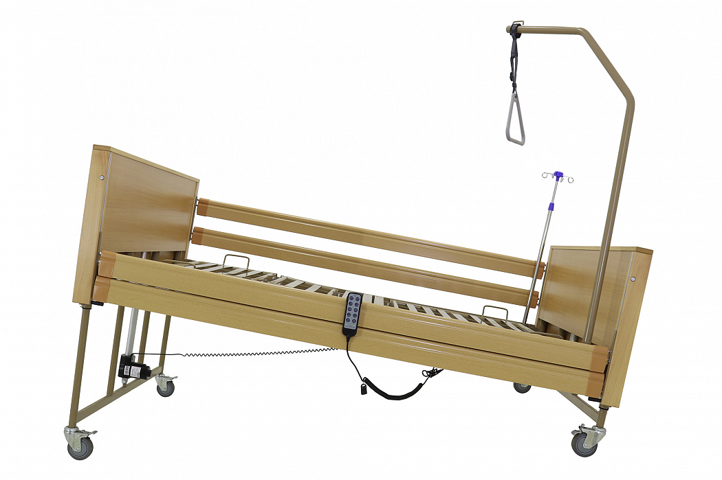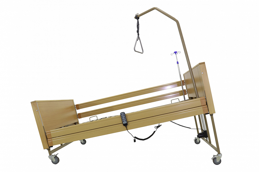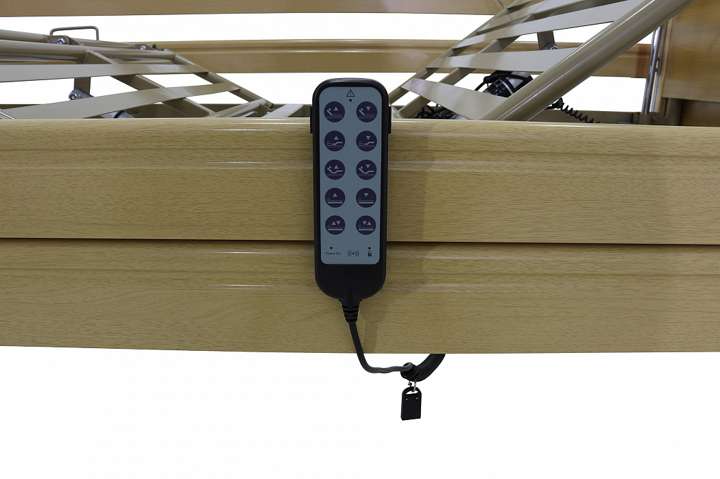Кровать имеет электрический привод, благодаря которому можно изменять положение ее секций в зависимости от потребностей больного. Модель имеет четыре секции и пять функций. Положение секций можно легко регулировать, фиксируя в нужном положении. Максимально возможная нагрузка на кровать составляет 200 килограмм, ее собственный вес – 120 кг.