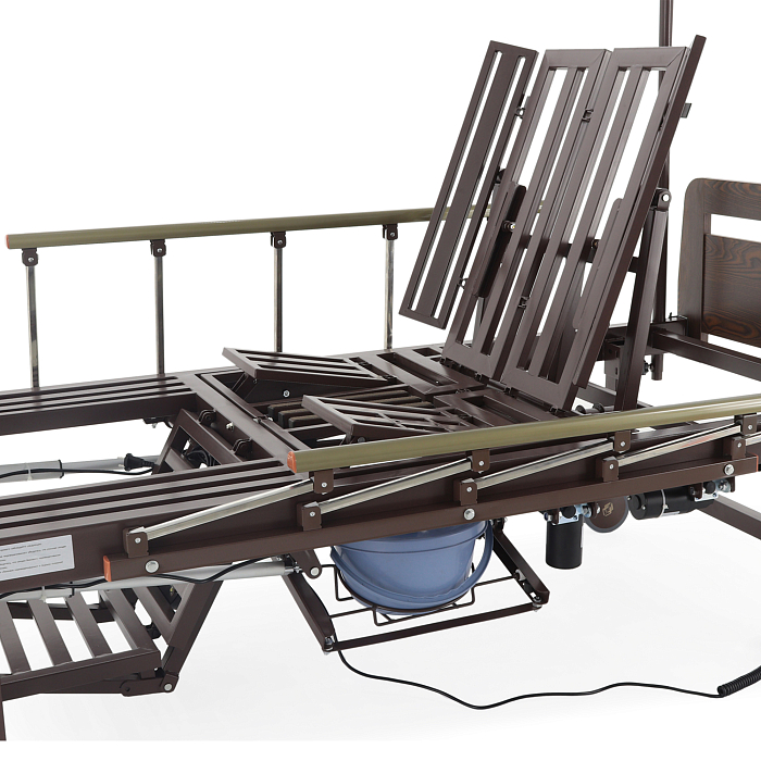 Уникальная конструкция кровати электрической YG-3 с боковым переворачиванием, туалетным устройством и функцией «кардиокресло» гибридной позволяет обеспечить максимальный комфорт для пациента. Такая модель имеет преимущество – ее секциями можно управлять без электроэнергии благодаря гибридному приводу. Именно поэтому такая кровать станет универсальным помощником в ситуации, когда выключено электричество.