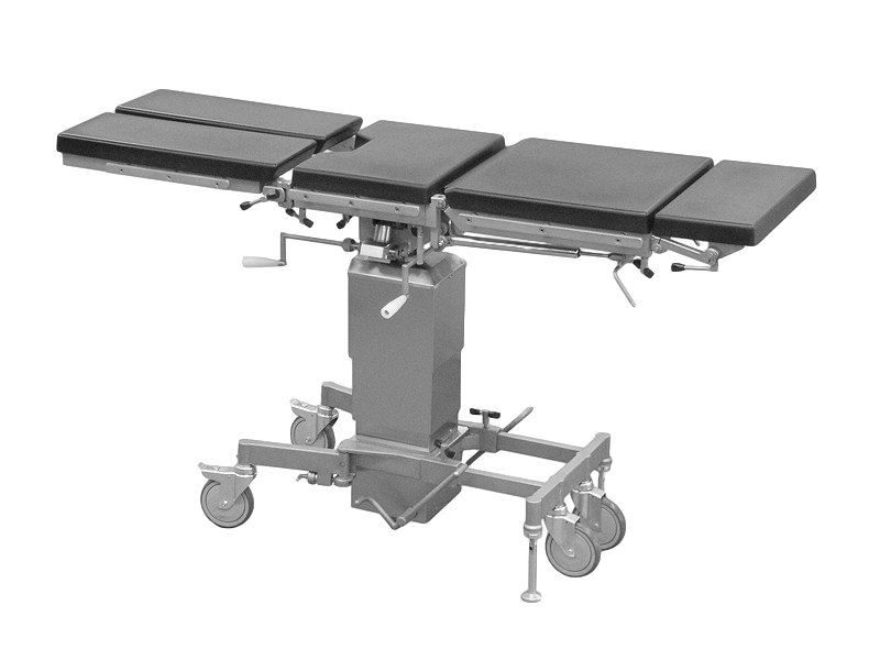 Подъем и опускание панели стола ОК-ОМЕГА осуществляется при помощи ножной педали гидродомкрата. Плавное изменение положения спинной секции обеспечивают встроенные пневмопружины. Управление боковыми и продольными наклонами, а также ножными и головной секциями производится с помощью ручных приводов.