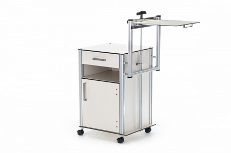 - Выдвижной столик имеет достаточную площадь для принятия пищи, чтения или иного проведения досуга. По его краям имеются небольшие бортики. Выдвижной столик регилируется по высоте от 770 до 1070 мм с помощью газового поршня.