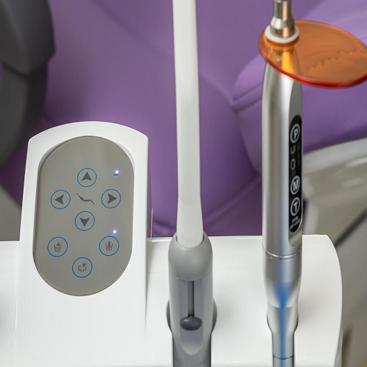 - Модуль ассистента на 4 инструмента с пистолетом вода-воздух, пылесосом, слюноотсосом и полимеризационной лампой
