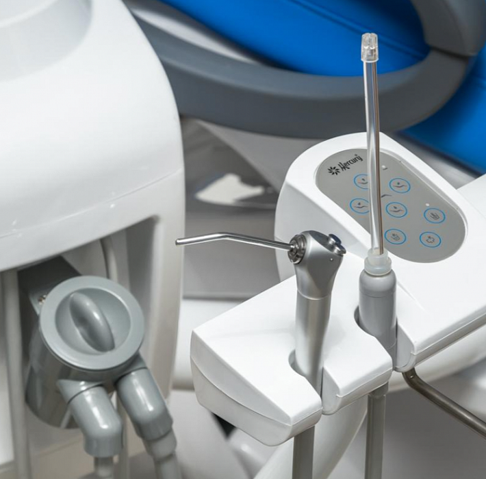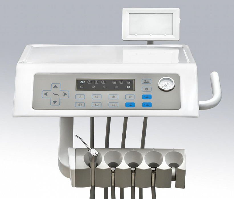 - Touchscreen-модуль ассистента на 4 инструмента: слюноотсос, пылесос, пистолет вода/воздух, 4-е свободное место