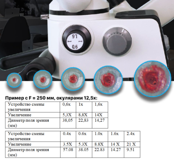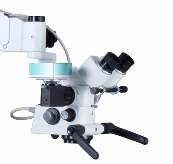 Расстояние между зрачками от 55 до 75 мм, стоматолог может удобно регулировать под свой размер глаз, ручки регулировки расстояния с обеих сторон головы микроскопа