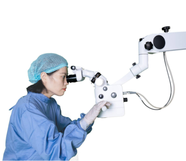 Стоматологический микроскоп имеет угол наклона 0°~200°, бинокулярный тубус, подходит для хирургов любого роста.