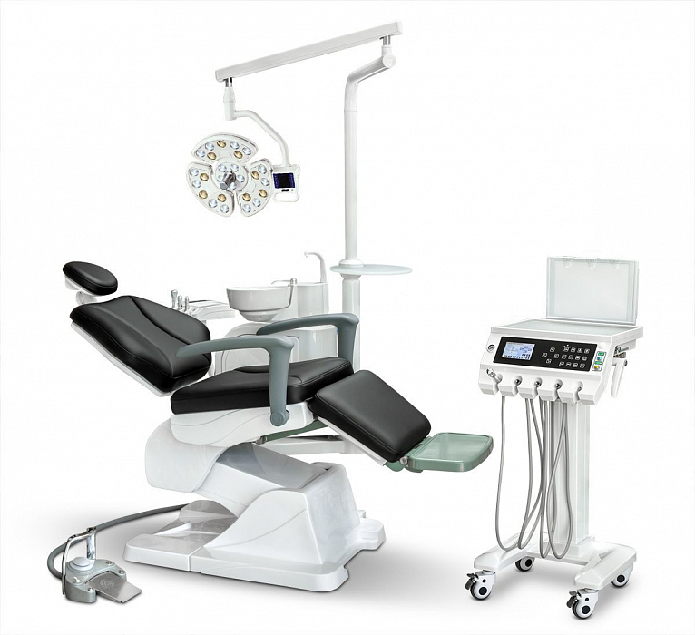 - Блок врача подкатной, верхней/нижней подачей инструментов, есть четыре выхода М4 и пистолет для подачи воздушно-водяной смеси.