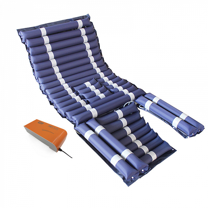 Малогабаритный электрокомпрессор размещается на полу или на боковой панели кровати. Регулировка задаваемого давления осуществляется в зависимости от массы пациента. Противопролежневый матрас обладает эффектом непрерывного массажа, предотвращает застои и не дает развиваться некрозу мягких тканей лежачего пациента.