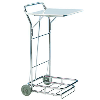 Рама из стальных хромированных труб; Рукоятка для транспортировки; Большие колеса; Может использоваться с тканевыми или полиэтиленовыми мешками (пакетами) 100-150 л .