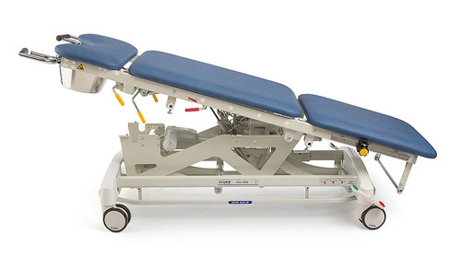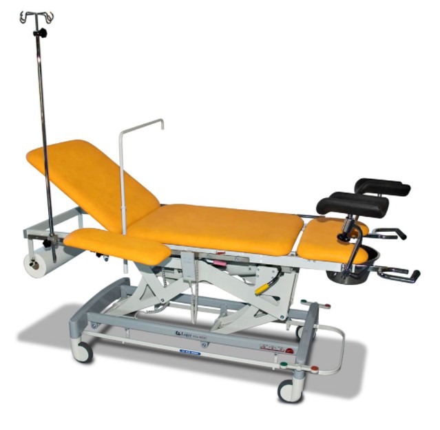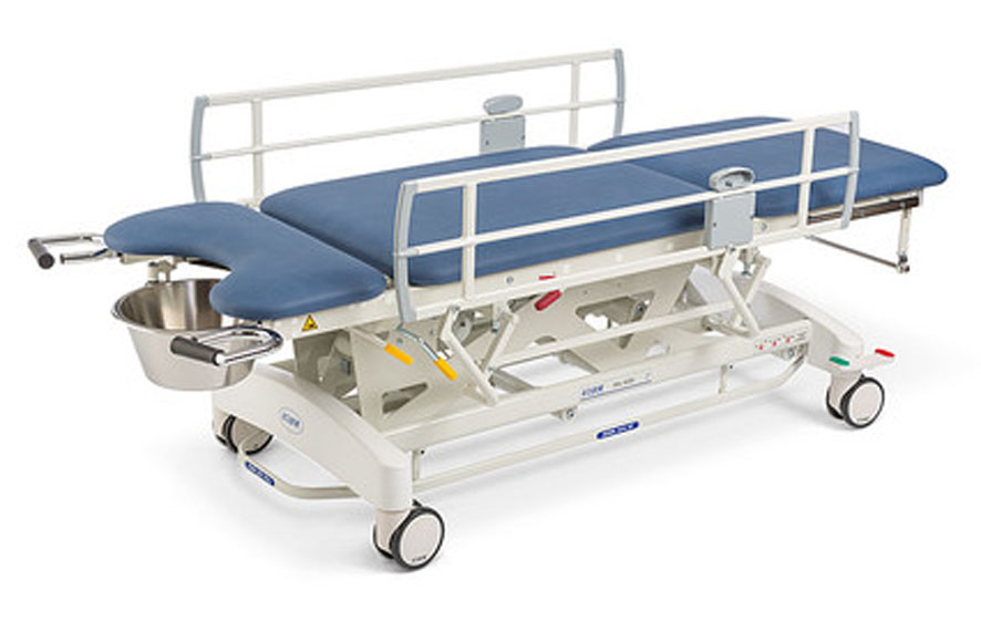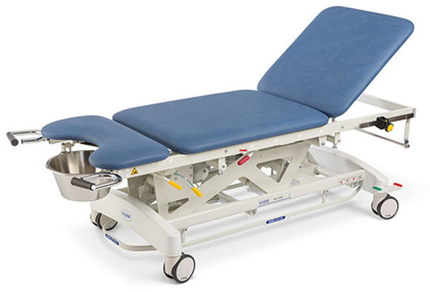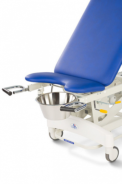 - Afia 4050-M Электрическая регулировка высоты ножной педалью в виде рамы и ручным пультом управления, центральная блокировка колес и направляющее колесо, трехсекционное ложе, электрически регулируемая верхняя спинная секция, регулировка нижней спинной секции с помощью пневмопривода, регулировка сиденья с помощью пневмопривода, пяточные упоры, гинекологическая емкость.