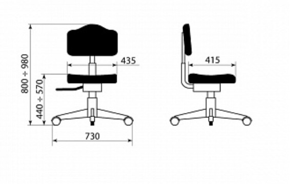 Автоматическая регулировка высоты с помощью механизма "газ-лифт". Снабжено механизмом регулировки угла наклона спинки, с возможностью фиксации в необходимом положении.