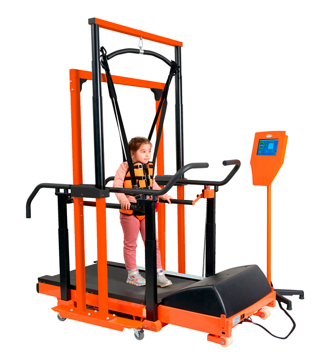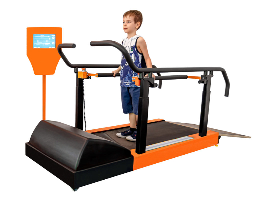 Беговая дорожка модель «Детская» имеет возможность для врача параметрировать программу тренировки пациента и используется в неврологии, травматологии, ортопедии, кардиологии и пульмонологии на 2-3 этапах реабилитации больных.