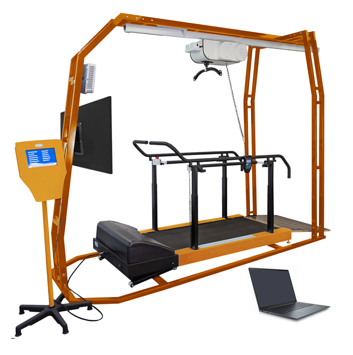 - Дополнительная настраиваемая проекция шагов на беговом полотне для мотивации пациента и тренировки координации;