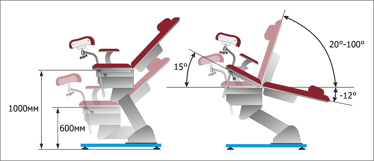 - Подогрев сидения пациента с возможностью регулировки интенсивности нагрева