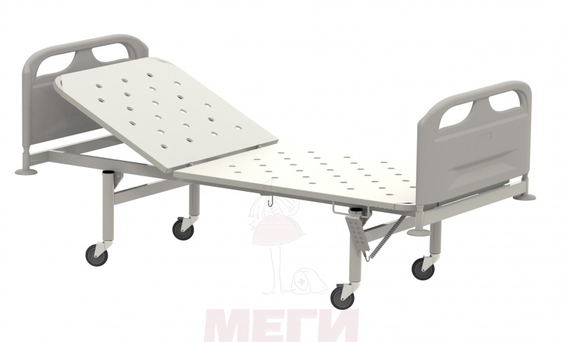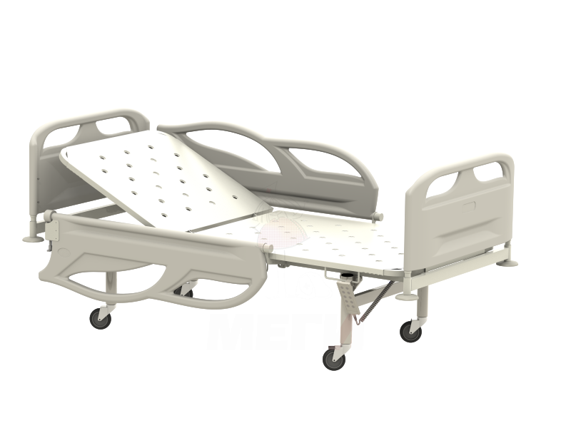 Ложе кровати изготовлено из перфорированных металлических панелей из листовой стали толщиной 0,8 мм, что обеспечивает комфортное положение пациента на кровати и свободную вентиляцию подматрасного пространства.
