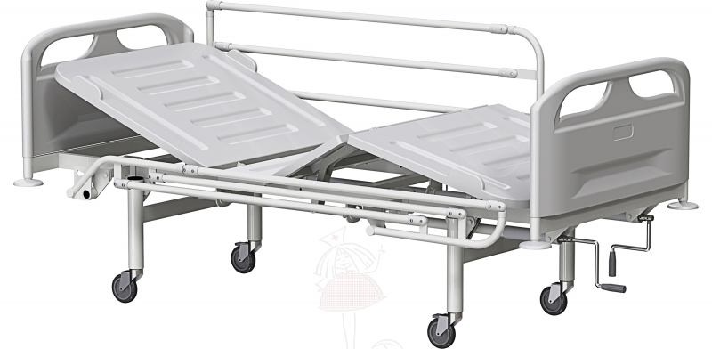 Многосекционное ложе кровати, изготовленное из стальных труб и пластикового формованного листа, обеспечивает необходимое для лечения положение пациента на кровати и свободную вентиляцию подматрасного пространства.