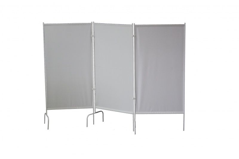 Ширма медицинская трехсекционная с полотнами из ткани.