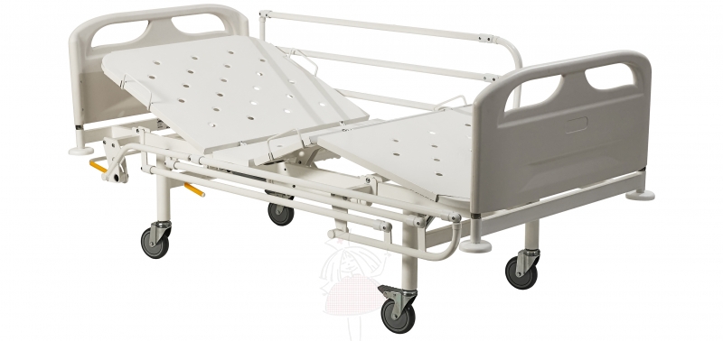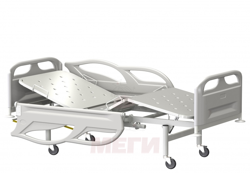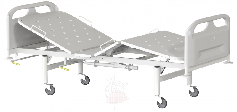 Многосекционное ложе кровати изготовлено из стальных труб и перфорированных металлических панелей из листовой стали толщиной 0,8 мм, что обеспечивает комфортное положение пациента на кровати и свободную вентиляцию подматрасного пространства.