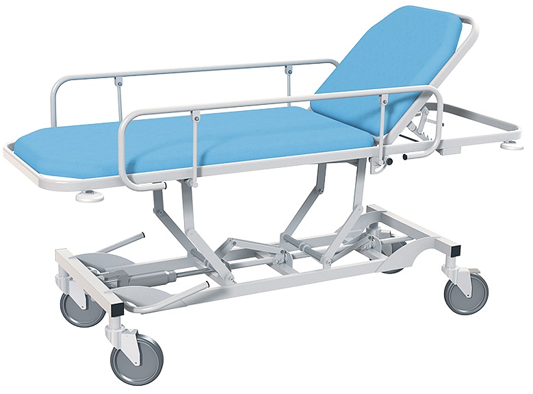 Предназначена для внутрикорпусной перевозки больных в лечебных учреждениях любого профиля. Тележка внутрикорпусная для перевозки больных, с регулированием высоты панели гидроприводом, в комплекте с боковыми ограждениями и матрацем, с меаническим регулированием подголовника(зубчатая рейка)