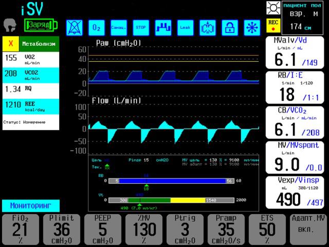 Аппарат для проведения искусственной вентиляции легких с непрерывным мониторингом газообмена и оценкой метаболизма у детей и взрослых в отделениях реанимации, хирургии, интенсивной терапии, а также при транспортировке по клинике.