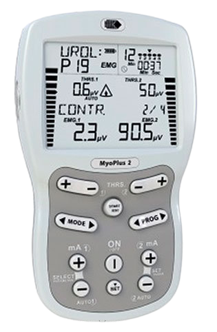 - NeuroTrac MyoPlus2 - представляет собой двухканальный ЭМГ-прибор с двумя дополнительными каналами для неиромышечнои стимуляции (НМС). MyoPlus 2 можно использовать в качестве прибора с Биологической обратной связью с помощью ЖК-экрана для терапии пациентов в режиме игры и обратной реакции
