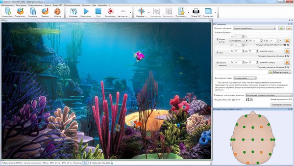 - проведение тренингов по различным физиологическим параметрам: ЭЭГ, частоте дыхания, ЧСС, ЭМГ, КГР или температуре