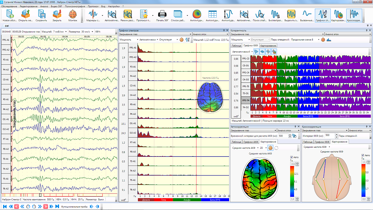 Возьмите «Нейрон-Спектр-3» с собой на выезд вместе с ноутбуком. Энцефалограф получает питание по кабелю USB, через который он также передает данные в компьютер. Развернуть ЭЭГ-кабинет вы сможете в любом месте: даже при отсутствии питающей сети энцефалограф будет работать от батареи ноутбука.
