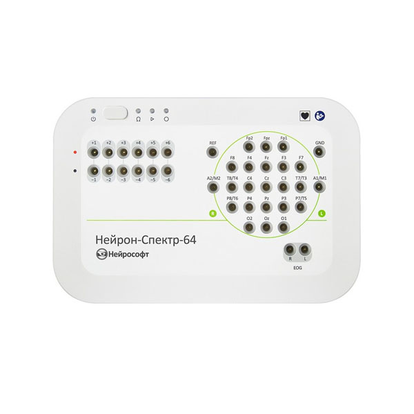 Электронный блок системы «Нейрон-Спектр-64» имеет 25 ЭЭГ-каналов, выделенные каналы для ЭКГ и ЭОГ, 6 дополнительных дифференциальных каналов. При желании любой канал прибора может быть использован как канал постоянного тока.