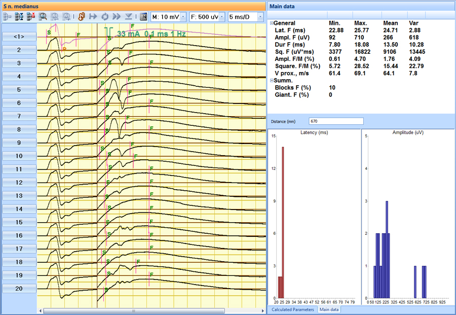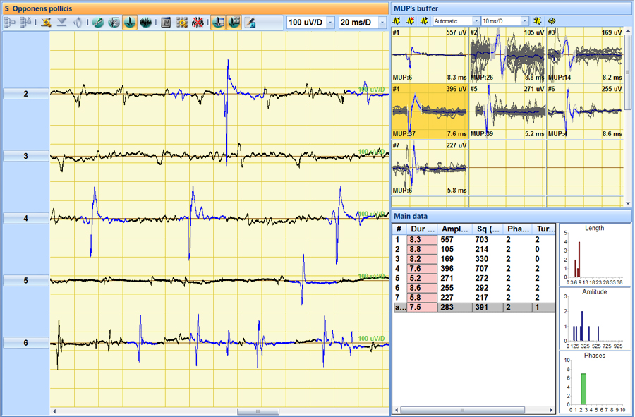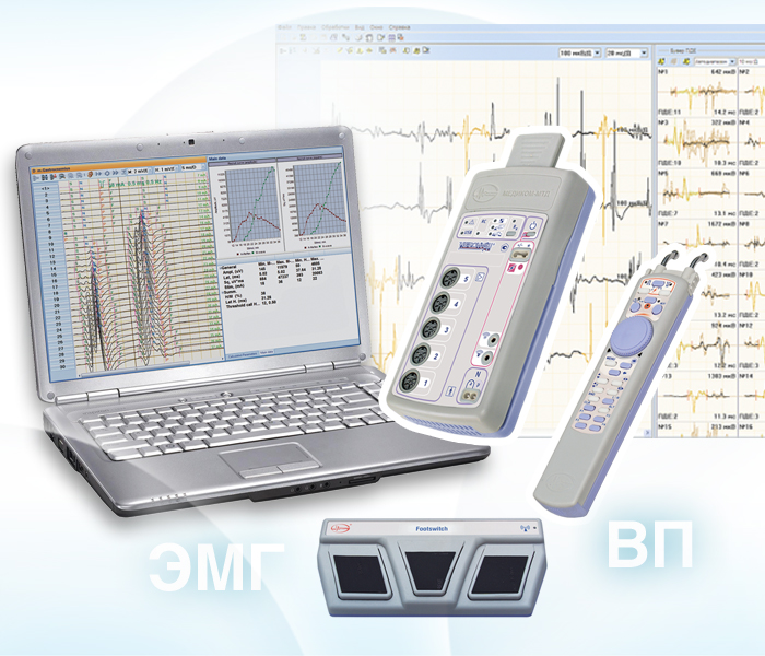 - Электронейромиограф с функциями исследования вызванных потенциалов мозга обеспечивает качественную регистрацию и исчерпывающий анализ миографических сигналов и вызванных потенциалов.