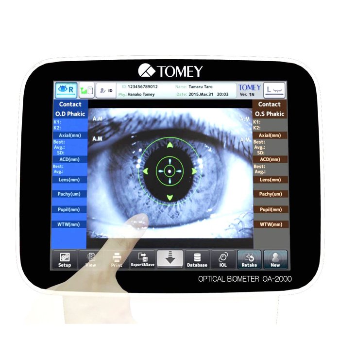 C новейшей технологией Tomey А-сканирования домена Фурье вы можете измерить почти все случаи плотной катаракты. Редкие случаи действительно зрелой катаракты можно обследовать при помощи ультразвукового прибора AL-4000, который имеет сообщение с ОА-2000 при помощи Bluetooth.