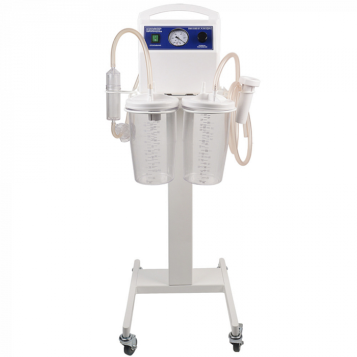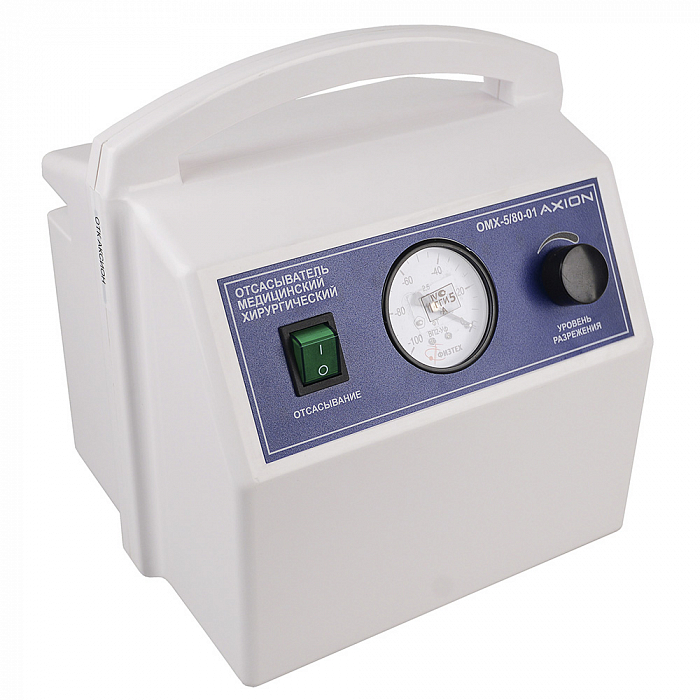 Отсасыватель медицинский хирургический ОМХ-5/80-01 АКСИОН» передвижной предназначен для отсасывания жидкостей, частиц тканей, газов и воздуха из ран и полостей организма при хирургических операциях.