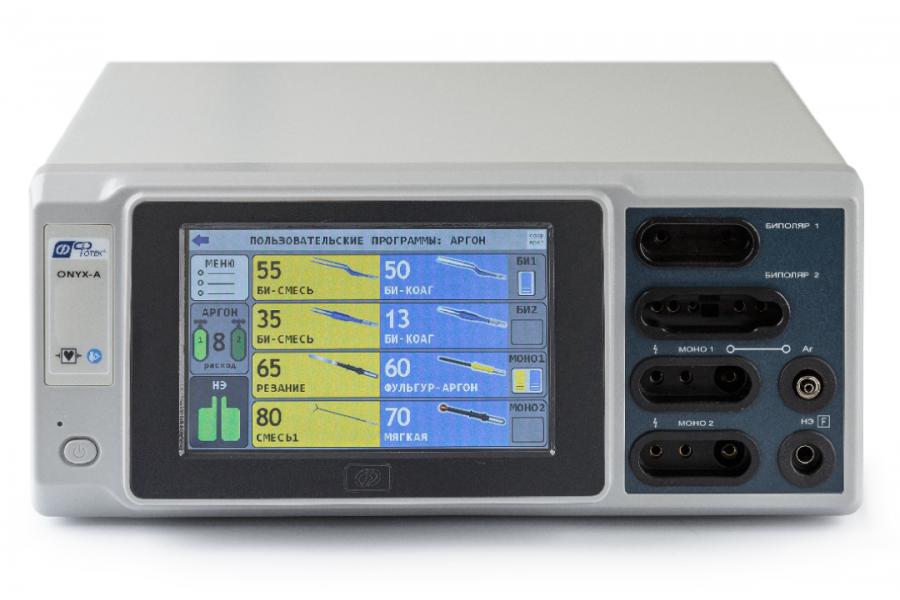 Интеллектуальная система ONYX-А открывает новое поколение электрохирургических аппаратов «ФОТЕК», оснащенных полным набором современных режимов резания и коагуляции, в том числе в среде аргона.