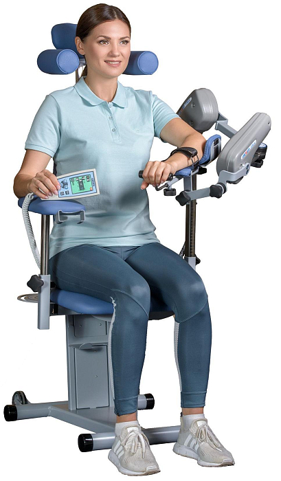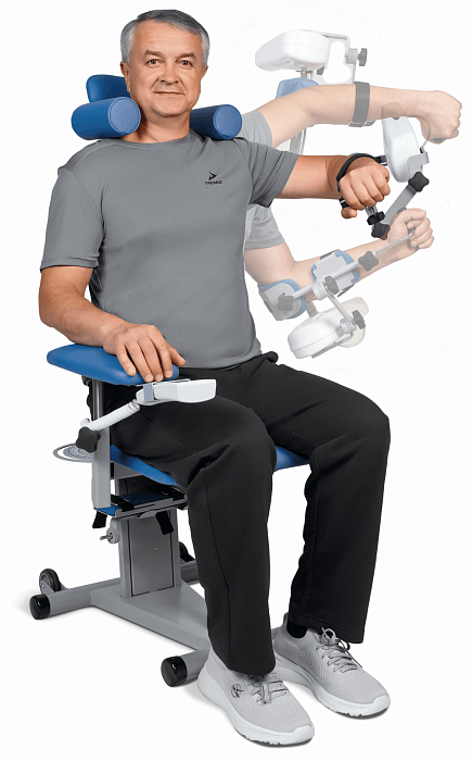 - Аппарат оснащен двумя моторами. Это позволяет разрабатывать плечевой сустав в трех плоскостях — в режиме сгибания/разгибания, приведения/отведения и элевации/ротации. Моторы могут работать поодиночке и одновременно.